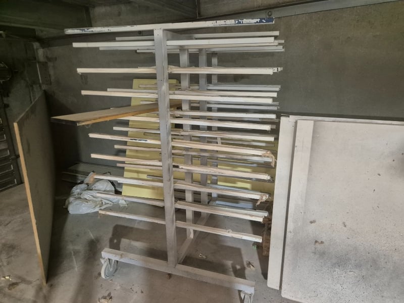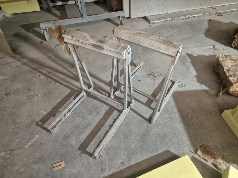 9 Tiered Dollied Wood Holder1 set of Tressle Wood holdersSold as Lot