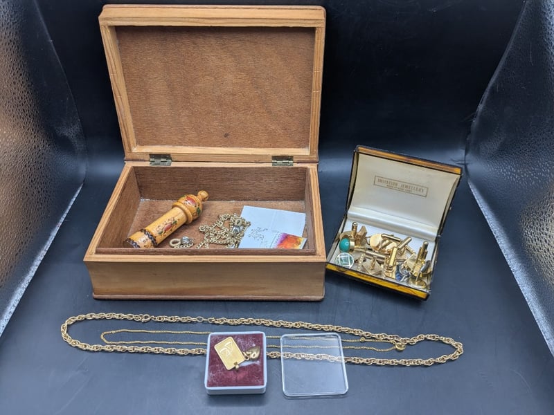 Jewellery, including gold style pendents hallmarked 375 and 750, various pairs cufflinks and more
