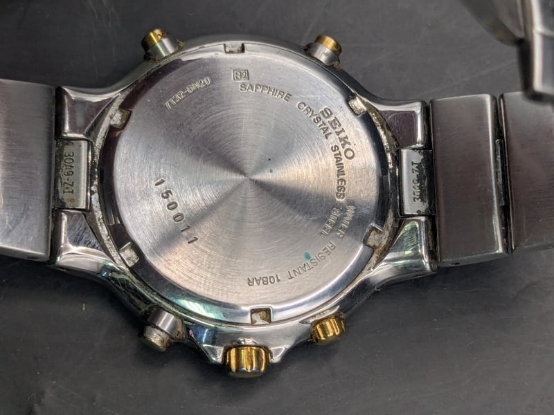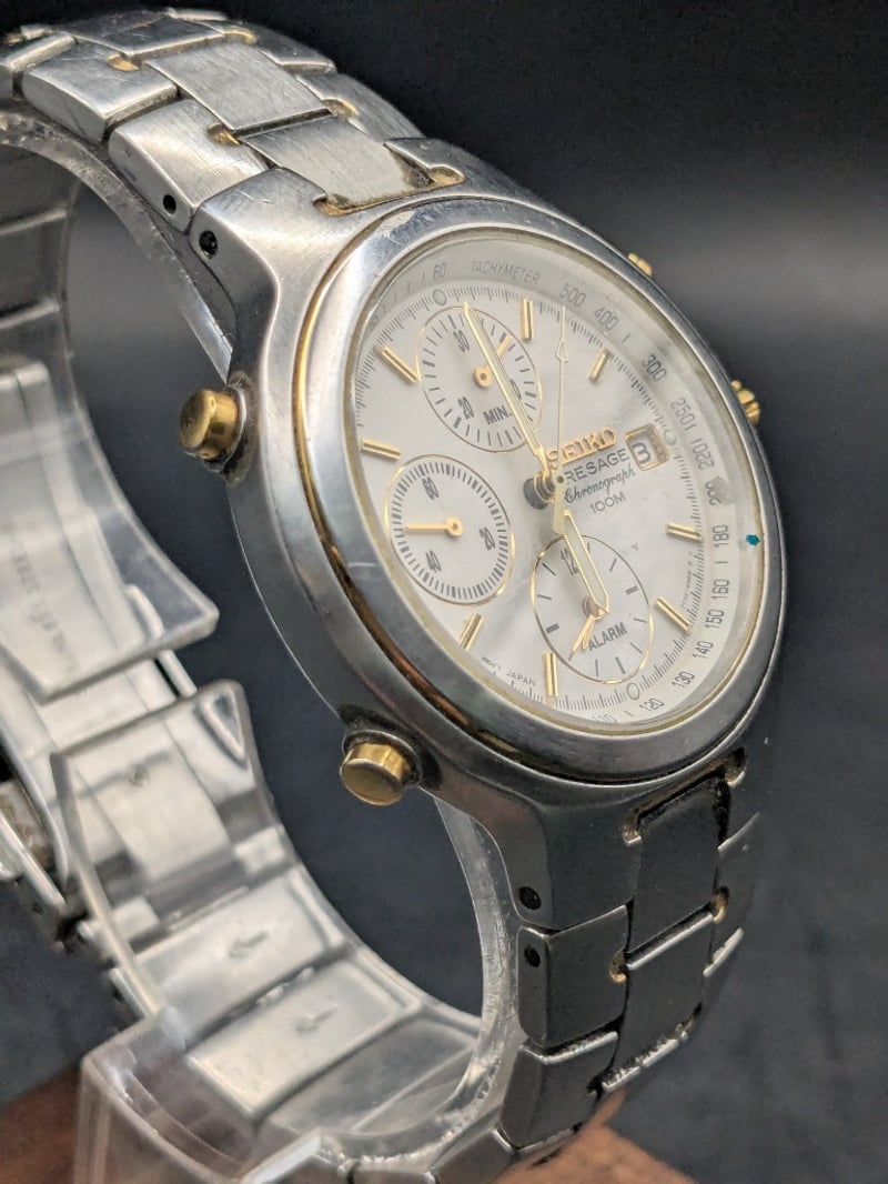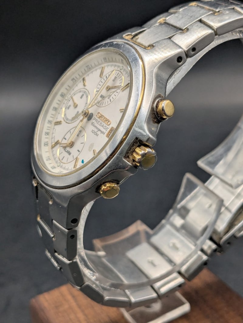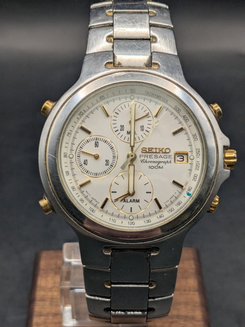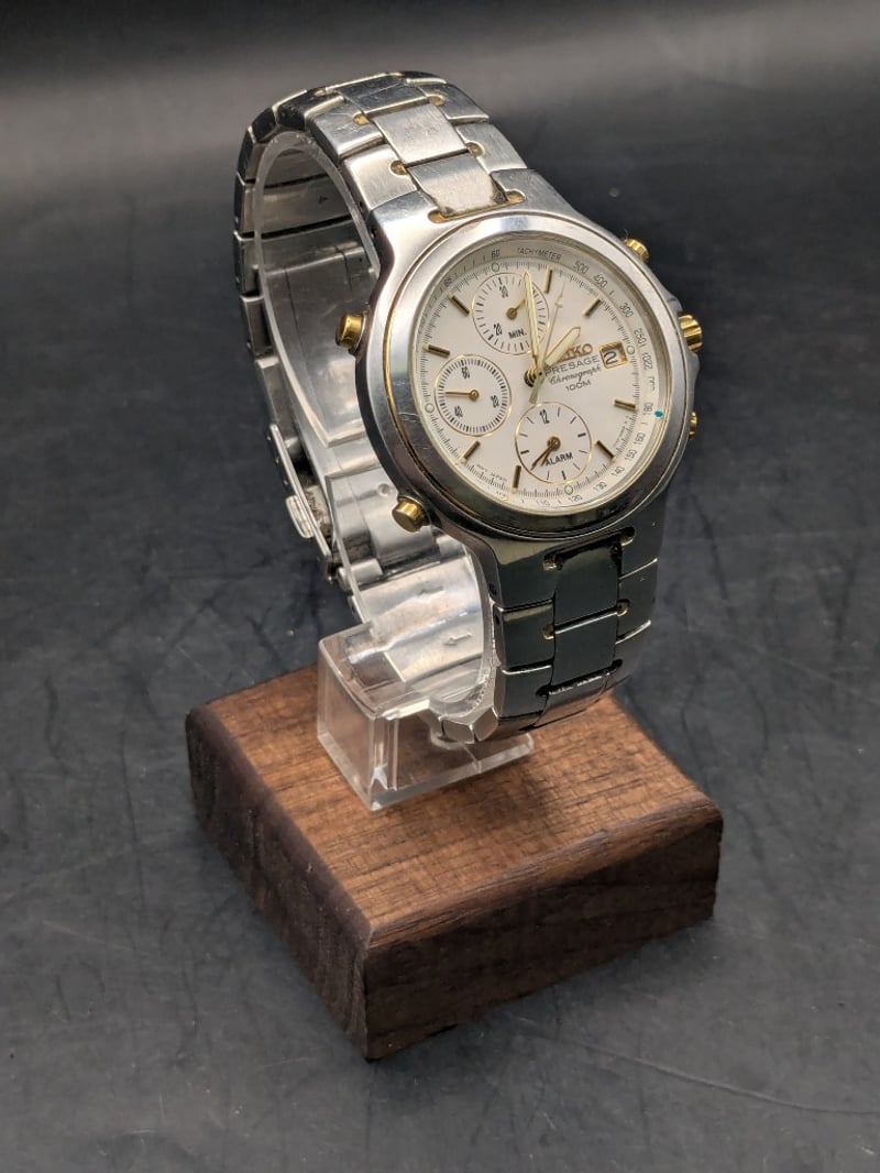 Watch, Seiko Presage Chronograph 100M two-tone watch 7T32-6N20