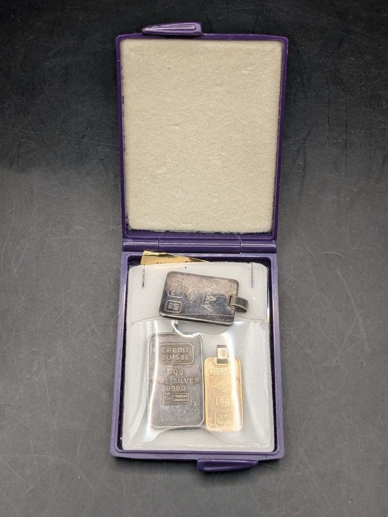 Pendants, includes 1 x Cragside 5g gold style ingot Aries zodiac pendant, 1x SRM .9998 fine silver ingot Aries zodiac pendant and 1 x Credit Suisse 20g fine pendent sold as lot