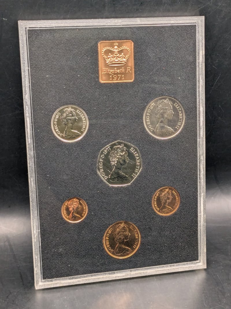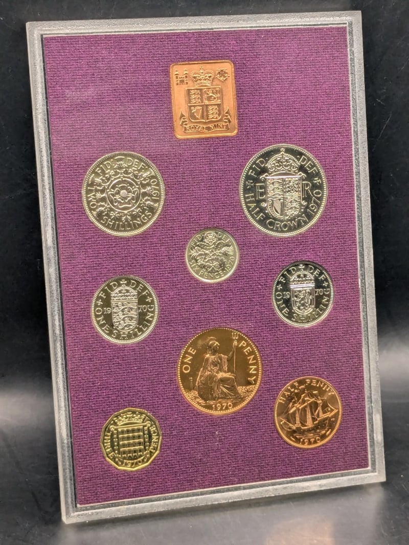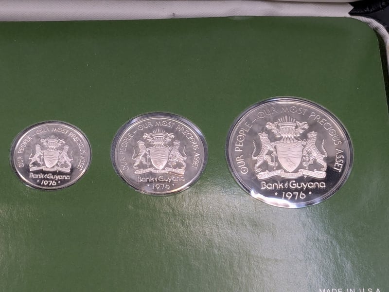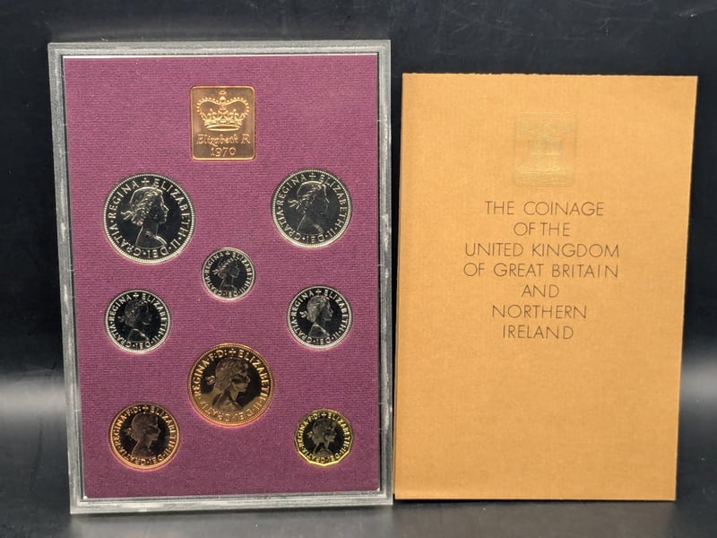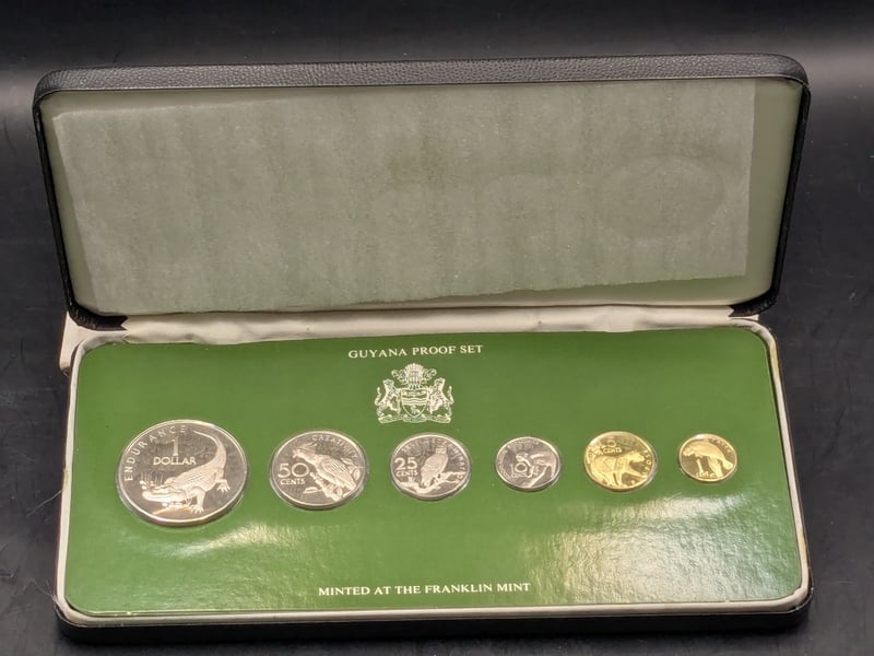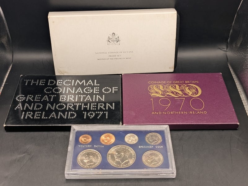 Coin sets, includes FM national coinage of Guyana 1976 proof set, coinage of Great Britain and Northern Island 1970/71 and more