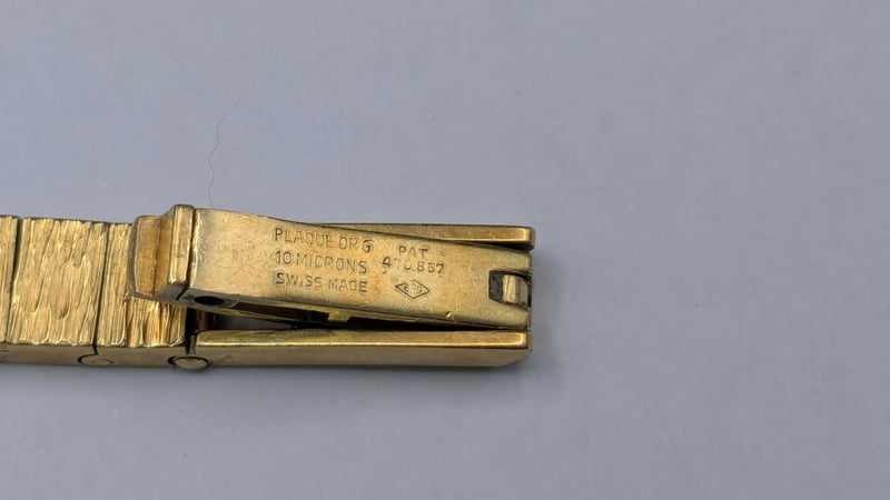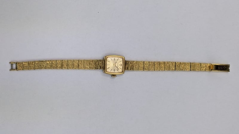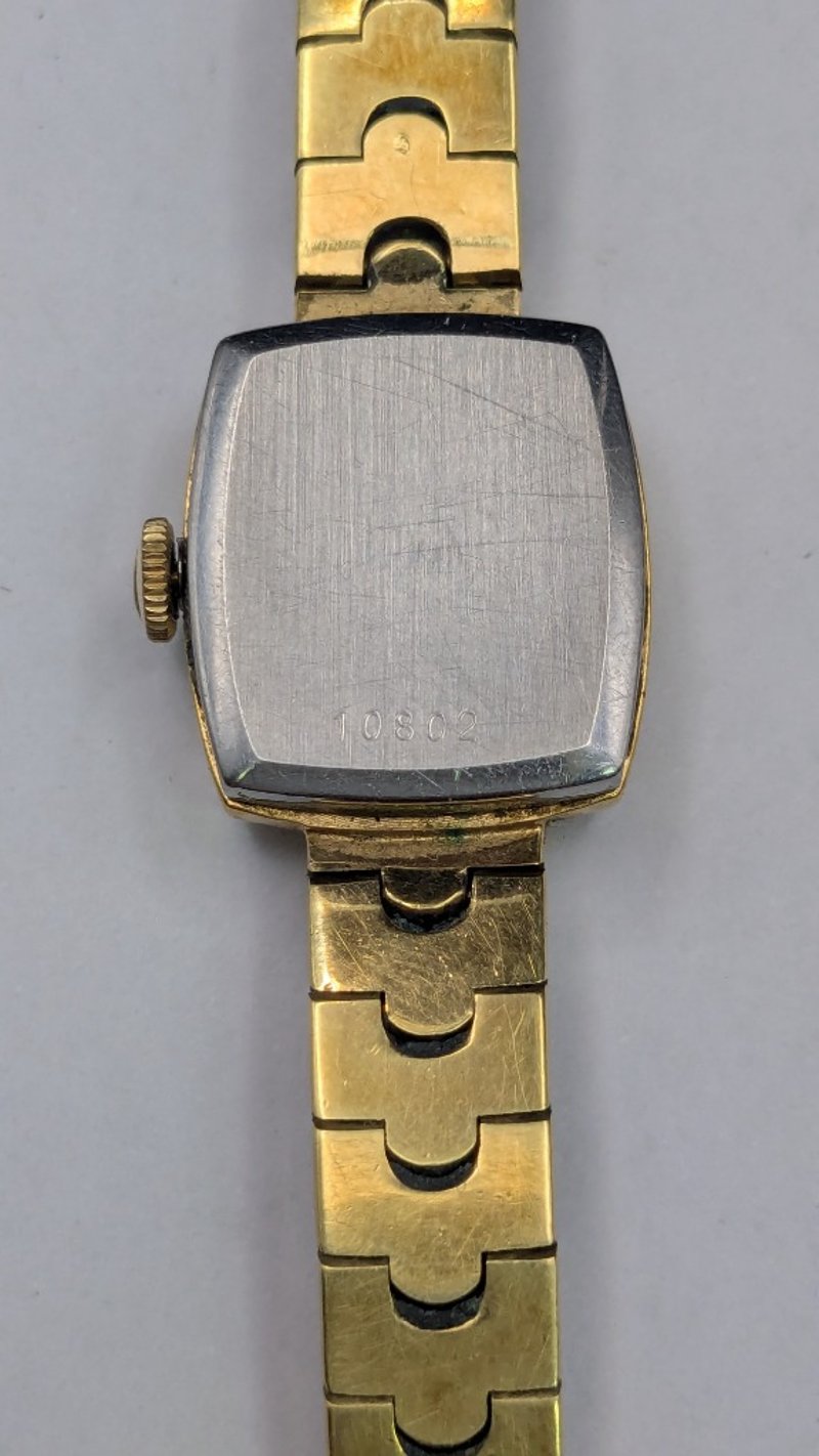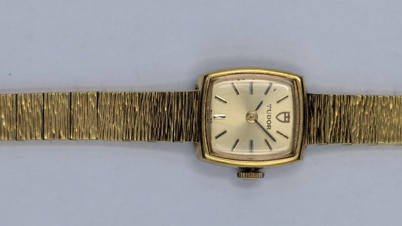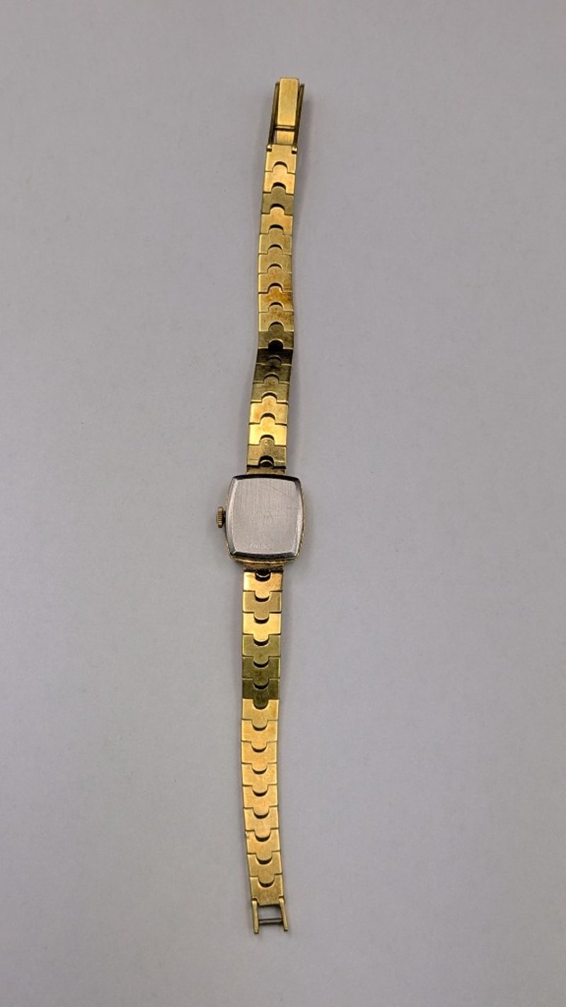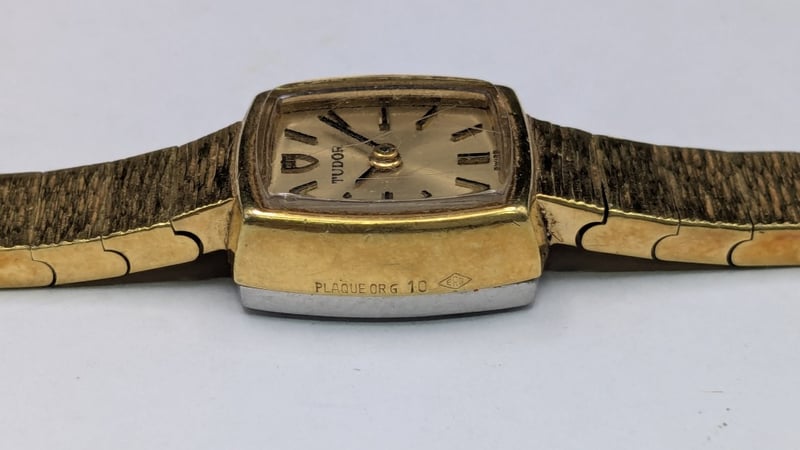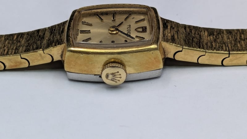 Watch, vintage gold-plated Tudor ladies watch with a square case and a textured, integrated bracelet