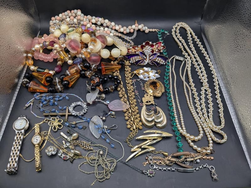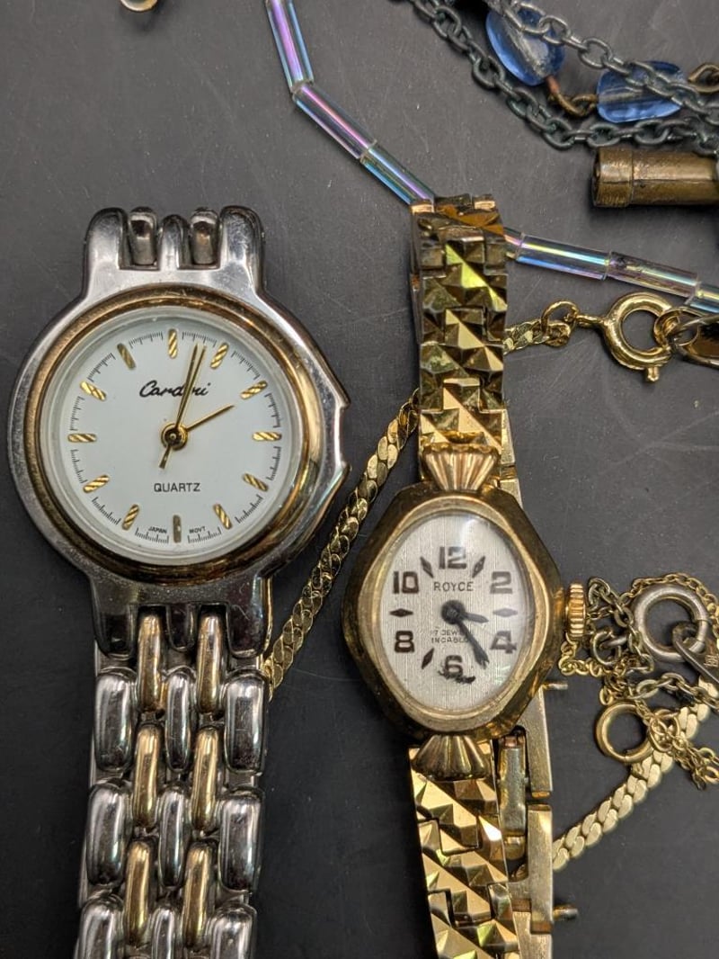 Jewellery, including vintage style Royce ladies wrist watch, assorted statement necklace and more