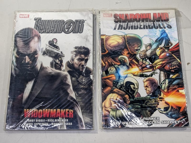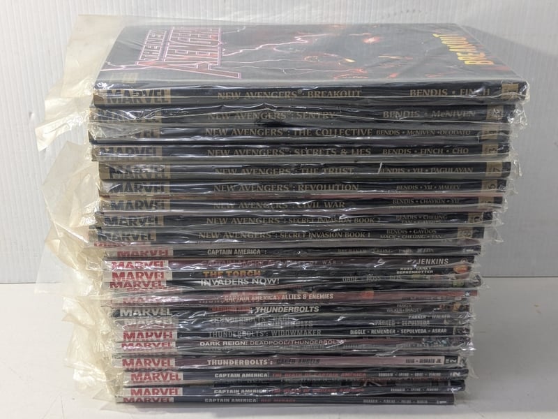 Comics, assorted series including hardcover The New Avengers, Vol. 1-9, Thunderbolts, Captain America and more Inspection recommended Sold as lot