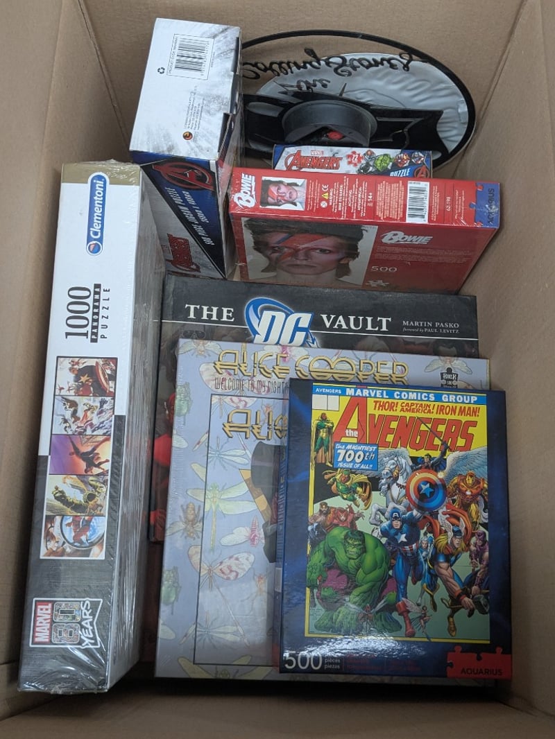 Homwares, 3 boxes including framed prints, mugs, puzzles, lava lamps and more