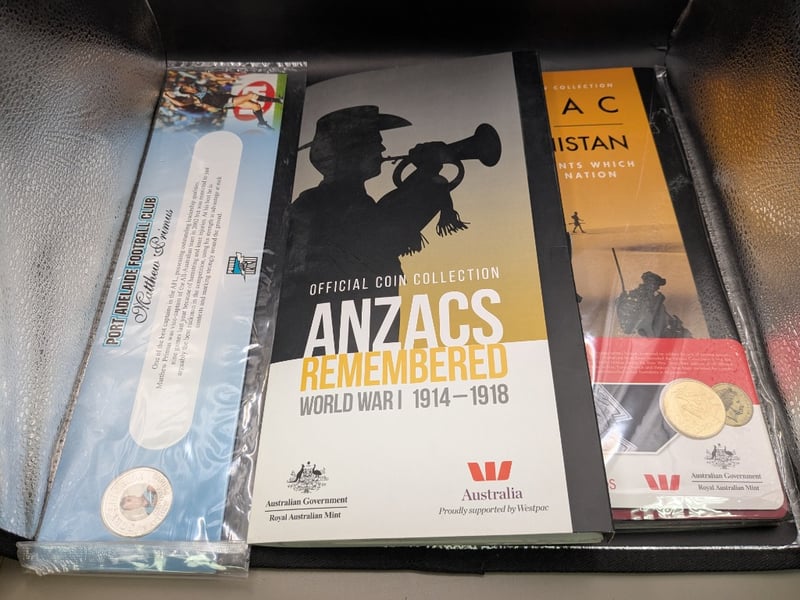 Coins, Anzacs Remembered RAM complete coin collection, Port Adelaide AFL Captain Matthew Primus token and more