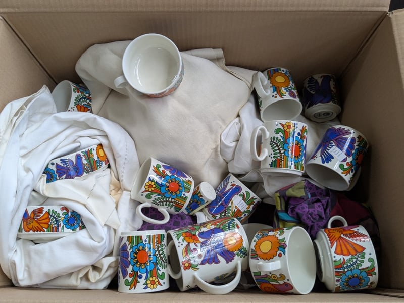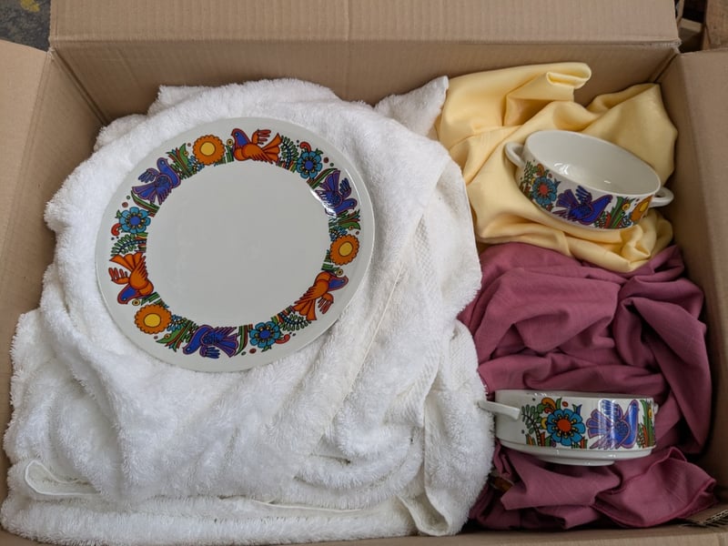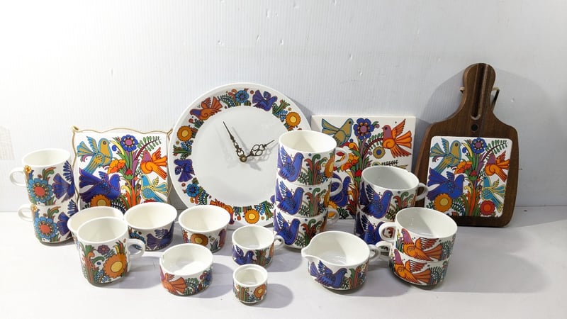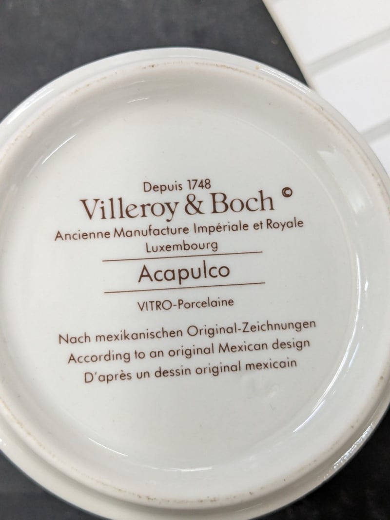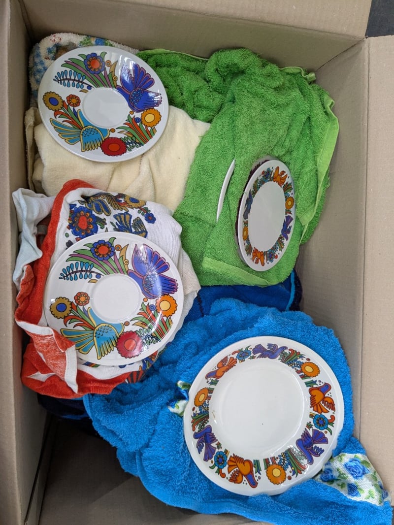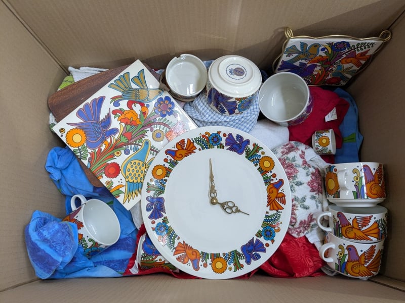 Dinnerware, 4 boxes of vintage Villeroy & Boch "Acapulco" patterned dinnerware, various pieces