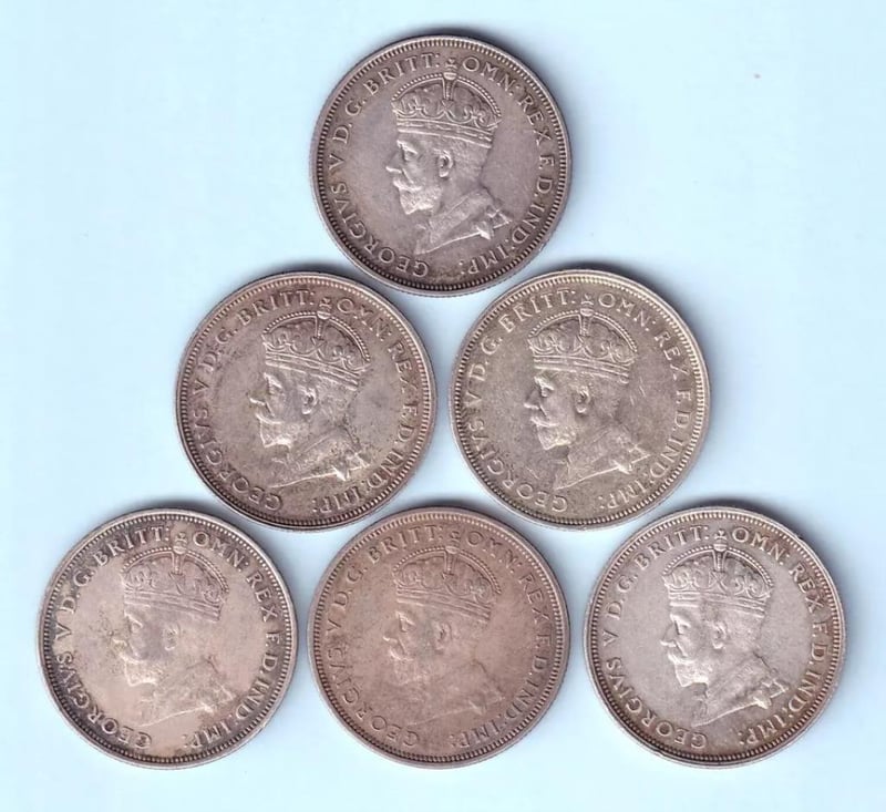 1927 AUSTRALIA KGV SILVER FLORIN X 6 COINS…PLEASE NOTE THIS COINS ARE GETTING VERY HARD TO SOURCE 23528+2
