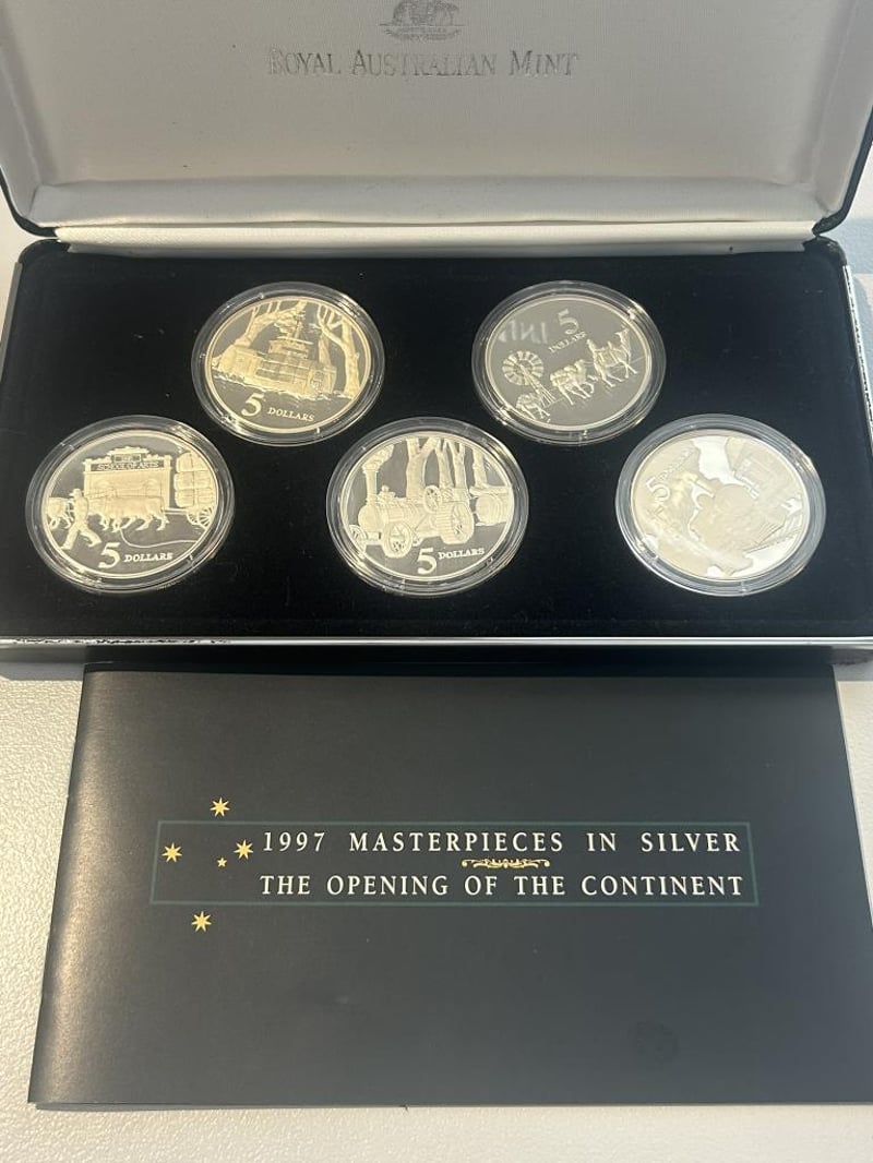 1997 FIVE DOLLAR OPENING OF A CONTINENT SILVER COINS IN CASE 5 X 35.79 Grams 92.5% Silver 178.95 Grams In Total Condition: Proof233489+2