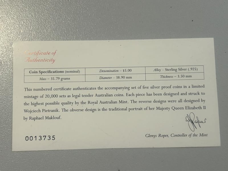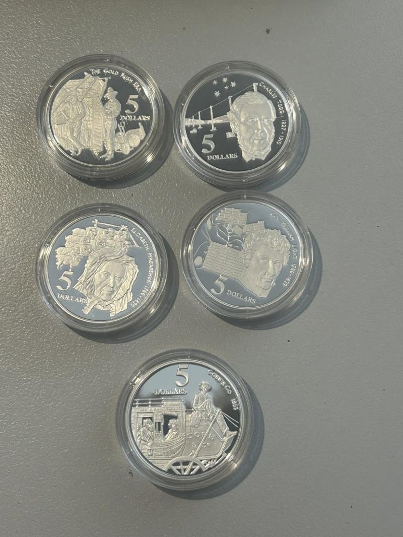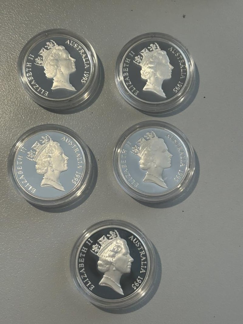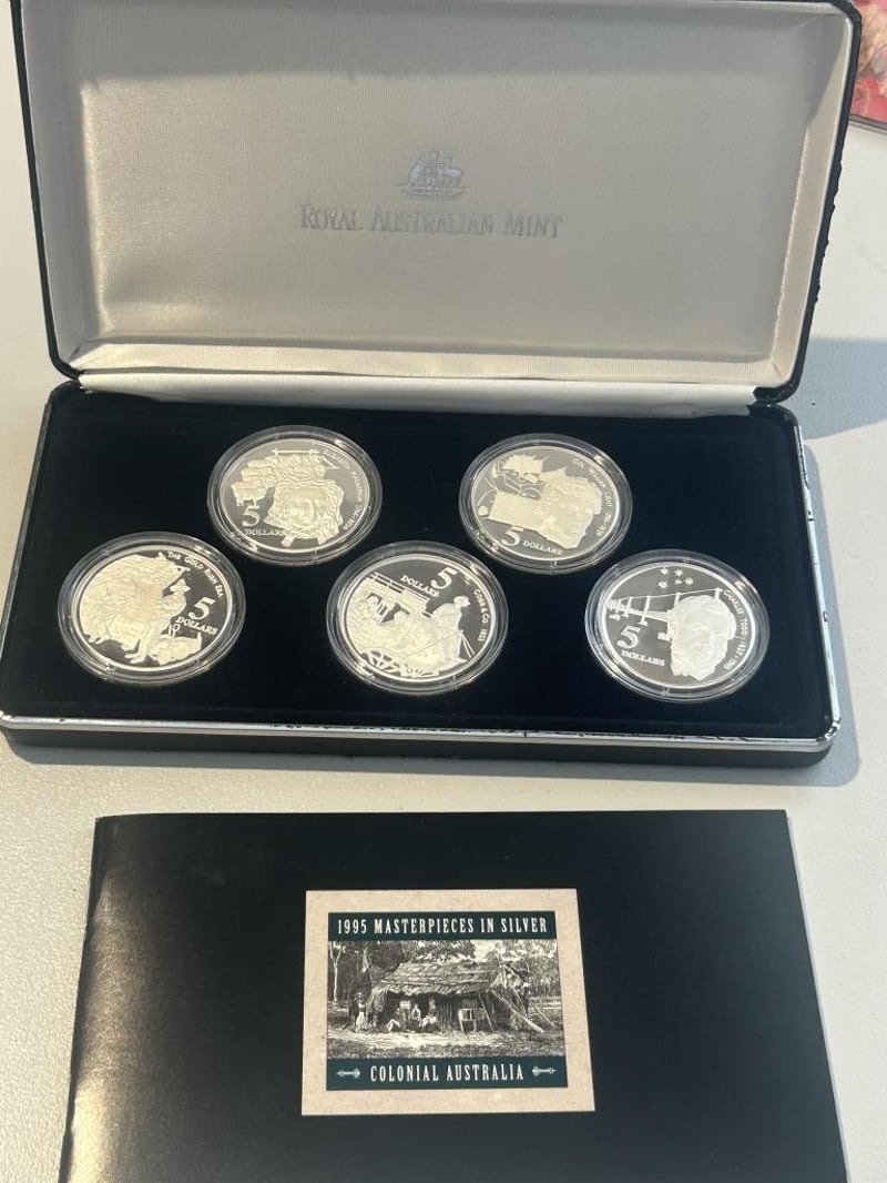 1995 FIVE DOLLAR COLONIAL AUSTRALIA SILVER COINS IN CASE