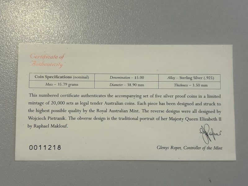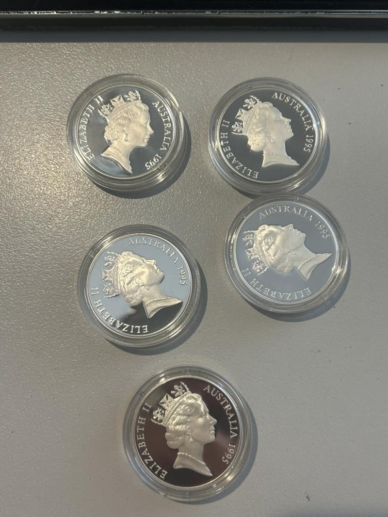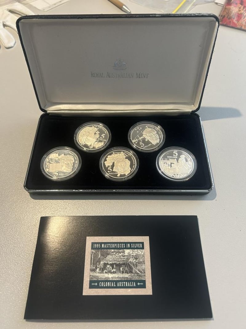 1995 FIVE DOLLAR COLONIAL AUSTRALIA SILVER COINS IN CASE