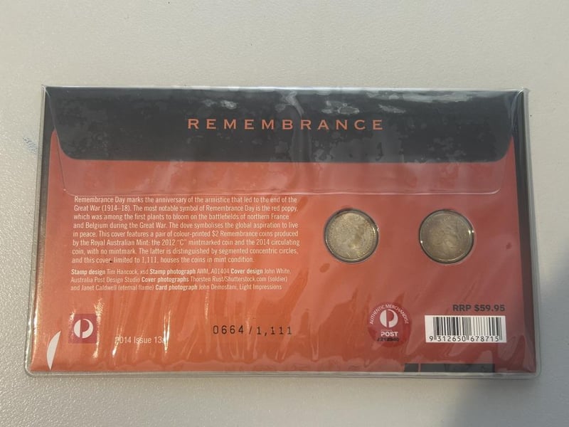 2014 TWO DOLLAR REMEMBERANCE DAY TWO COIN SET IN PNC 2012 "C" Mint Red Poppy And 2014 Green Dove Coin Mintage 1111 Condition: Unc233489+6
