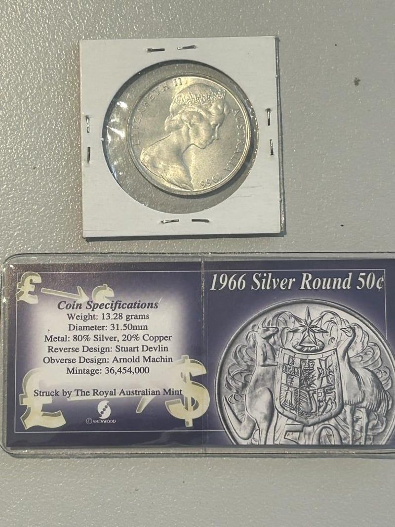 2 X 1966 ROUND FIFTY CENT COINS Condition: Unc233489+39