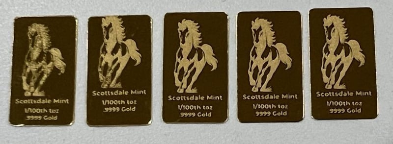 1/100 OUNCE SCOTTDALE GOLD BAR X 5 311160+28