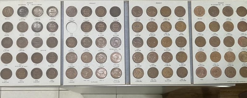 AUSTRALIA COMPLETE SET OF PENNIES SET INCLUDING 1925 & 1946 PENNIES TOTAL PENNIES 79 AUSTRALIAN MISSING IS 1930 PENNY 1925 & 1946 VERY NICE HIGH GRADE…SET ARE GETTING VERY HARDER TO SOURCE…ALSO DUE TO THE AGE IT HAS MARK