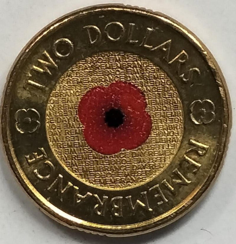 2012 $2 RED POPPY RARE COIN WITH RSL CERTIFICATE Condition: Unc Ex Mint Roll 488431+1