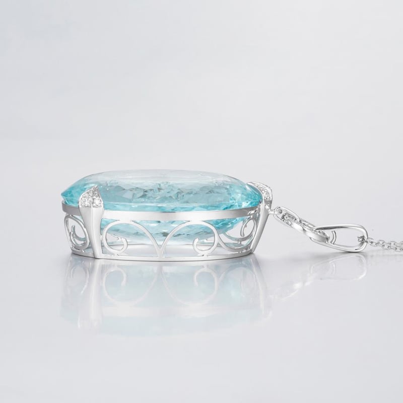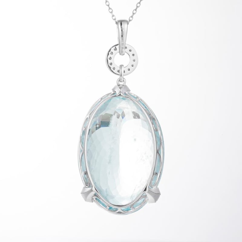 14CT WHITE GOLD AQUAMARINE AND DIAMOND NECKLACE Featuring, One Oval Cut, Light Pale Green-Blue Aquamarine (51.53Ct, Moderately Included), Claw Set, With 26 Round Brilliant Cut Diamonds (0.23Ct Tdw, G-H Colour, Si1-Si2 Clarity), Bead Set. Chain Length Is Adjustable Between 45 And 50Cm. Valuations Provided by an Independent Third-Party Professional Not Directly Associated With Lloyds Auctions at AUD $45000This valuation has been conducted by an independent third-party professional. The valuation amount is an assessment by the issuing valuer and does not reflect the auction value of the item. Any inquiries regarding the valuation should be directed to the issuing valuer (refer to contact details on the certificate), as Lloyds Auctions has no affiliation or influence over the valuation, the valuer, or the stated amount. Condition: Good - Refer Images 0+594