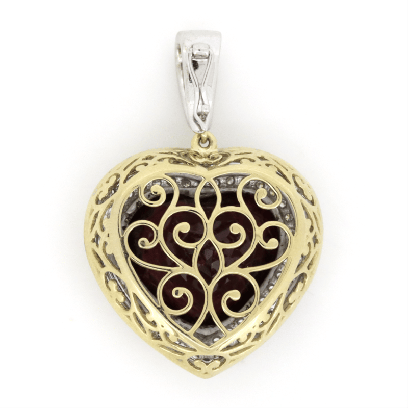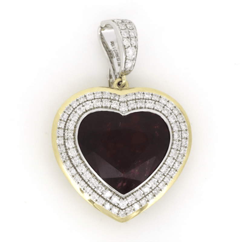 14K YELLOW/WHITE GOLD, 15.54CT RUBELLITE AND DIAMOND, HEART PENDANT.