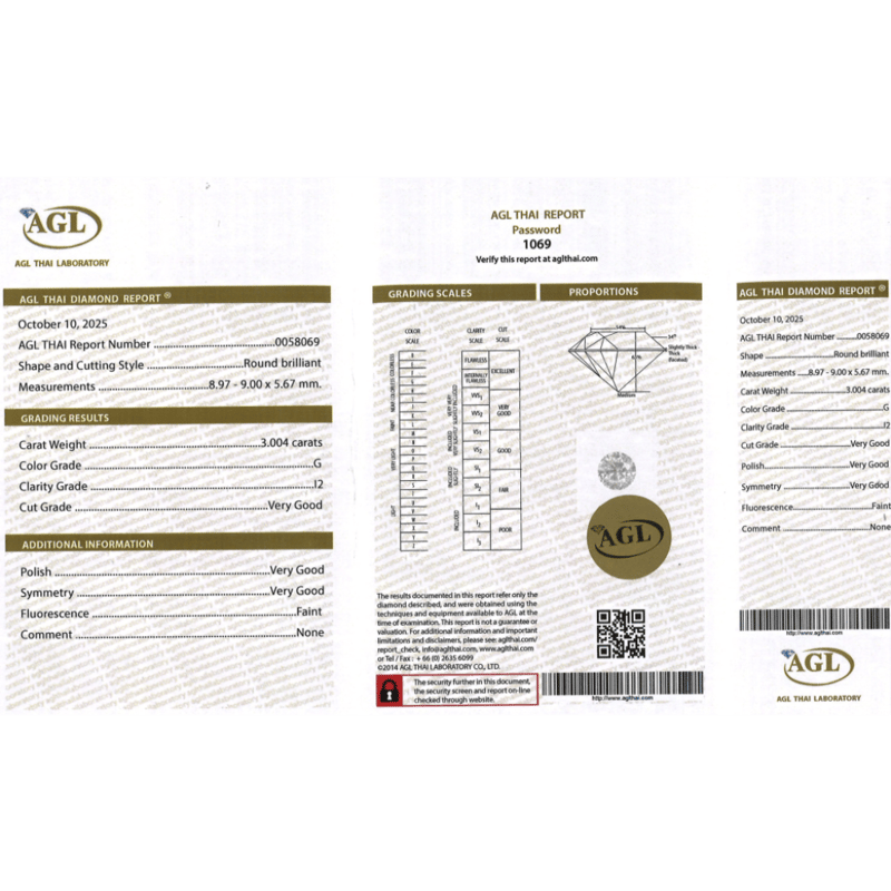 3.004CT CERTIFIED, NATURAL DIAMOND Round Brilliant Cut, G Colour, I2 Clarity, Loose, Unset. Stone Comes Sealed With Agl Report: 0058069. Valuations Provided by an Independent Third-Party Professional Not Directly Associated With Lloyds Auctions at AUD $$42,000.00This valuation has been conducted by an independent third-party professional. The valuation amount is an assessment by the issuing valuer and does not reflect the auction value of the item. Any inquiries regarding the valuation should be directed to the issuing valuer (refer to contact details on the certificate), as Lloyds Auctions has no affiliation or influence over the valuation, the valuer, or the stated amount. Condition: Good - Refer Images 0645908+5236