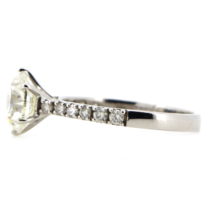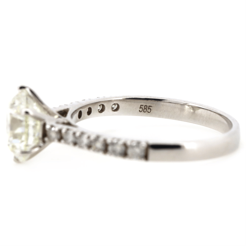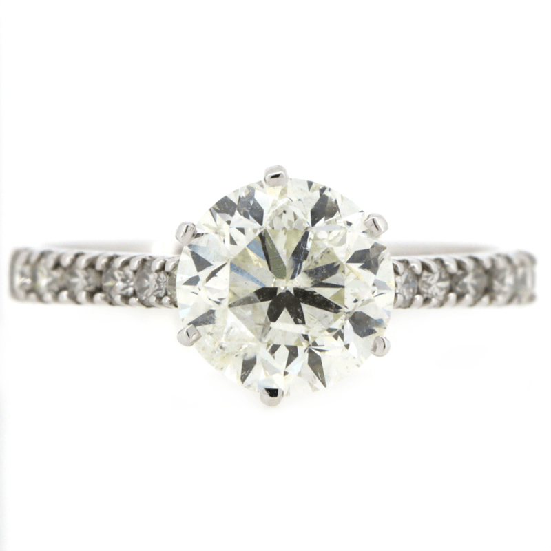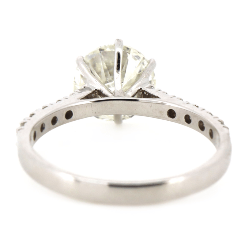 The Centre Features, One Round Brilliant Cut, Diamond (2.04Ct, H-I Colour, P1-P2 Clarity), 6 Claw Set. Decorating The Band Are, 12 Round Brilliant Cut, Diamonds (0.27Ct Tdw, H-J Colour, P2+ Clarity), Claw Set. Ring Size M 1/2.