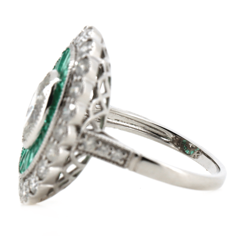 14K WHITE/YELLOW GOLD, 1.16CT COLOMBIAN EMERALD AND DIAMOND, ART DECO INSPIRED RING. The Centre Features, One Oval Mixed Brilliant Cut, Diamond (1.50Ct, G-H Colour, P2 Clarity), Bezel Set With Millgrain Detail. Surrounding The Centre Are, 27 Baguette Cut, Moderate Vivid Green, Colombian Emerald (1.16Ct Tsw, Slightly Included), Channel Set. Accompanied With 26 Round Brilliant Cut, Diamonds (1.46Ct, H-K Colour, Si1-Si2 Clarity), Bead Set With Millgrain Detail. Ring Size N 1/2. Valuations Provided by an Independent Third-Party Professional Not Directly Associated With Lloyds Auctions at AUD $$38,000.00This valuation has been conducted by an independent third-party professional. The valuation amount is an assessment by the issuing valuer and does not reflect the auction value of the item. Any inquiries regarding the valuation should be directed to the issuing valuer (refer to contact details on the certificate), as Lloyds Auctions has no affiliation or influence over the valuation, the valuer, or the stated amount. Condition: Good - Refer Images 0645908+5207