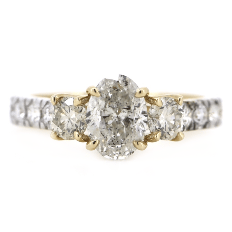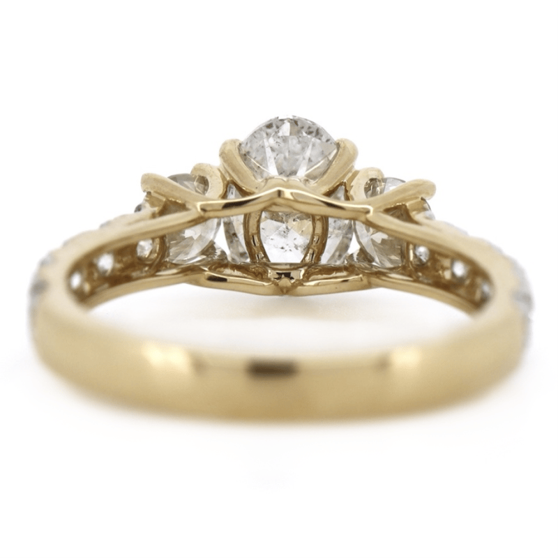 The Centre Features, One Oval Brilliant Cut, Diamond (1.01Ct, H Colour, I2 Clarity), Claw Set. Flanking The Centre And Decorating The Band Are, 12 Round Brilliant Cut, Diamonds (0.93Ct Tdw, H-K Colour, Si Clarity), Grain Set. Ring Size M.