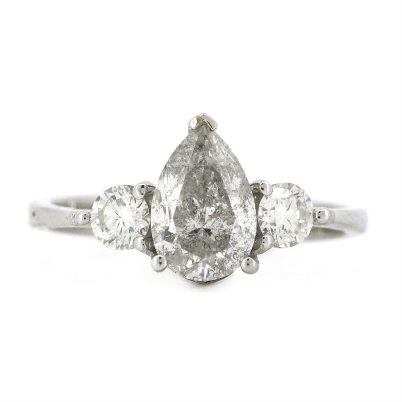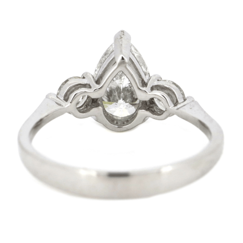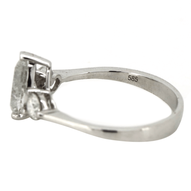 14K WHITE GOLD AND DIAMOND, TRILOGY RING. The Centre Features, One Pear Brilliant Cut, Diamond (1.02Ct, I Colour, P2 Clarity), Claw Set. Decorating The Accents Are, 2 Round Brilliant Cut, Diamonds (0.30Ct Tdw, H-K Colour, P2+ Clarity), Claw Set. Ring Size K. Valuations Provided by an Independent Third-Party Professional Not Directly Associated With Lloyds Auctions at AUD $$28,700.00This valuation has been conducted by an independent third-party professional. The valuation amount is an assessment by the issuing valuer and does not reflect the auction value of the item. Any inquiries regarding the valuation should be directed to the issuing valuer (refer to contact details on the certificate), as Lloyds Auctions has no affiliation or influence over the valuation, the valuer, or the stated amount. Condition: Good - Refer Images 0645908+5213