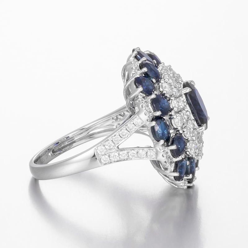 14CT WHITE GOLD AUSTRALIAN SAPPHIRE AND DIAMOND COCKTAIL RING