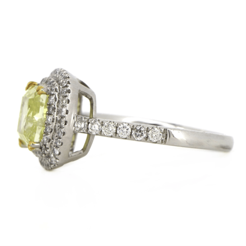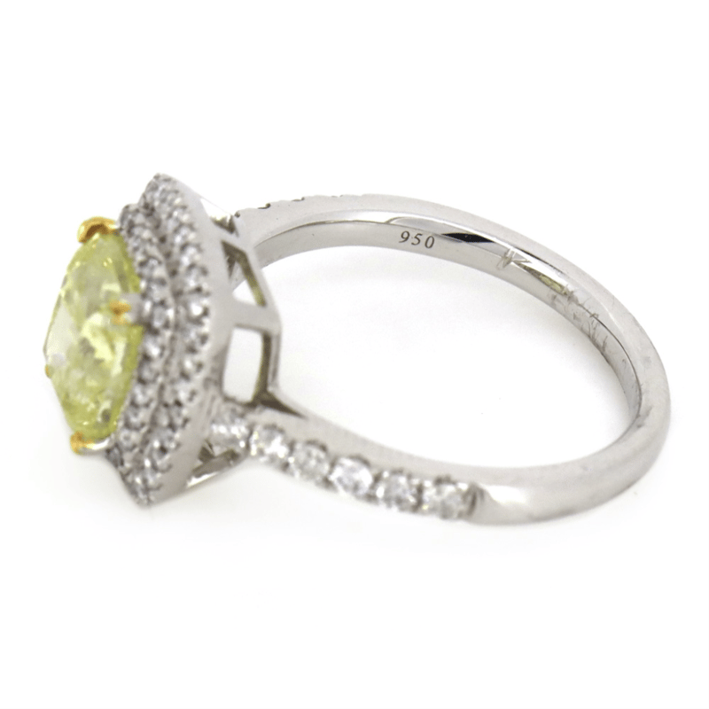 PLATINUM 950, YELLOW DIAMOND, DOUBLE HALO RING.