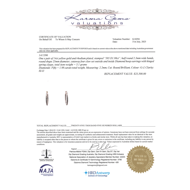 The Hoops Feature, 50 Round Brilliant Cut, Diamonds (1.98Ct Tdw, G-J Colour, Si-I1 Clarity), 4 Claw Set. The Earrings Have Hinged Closures.