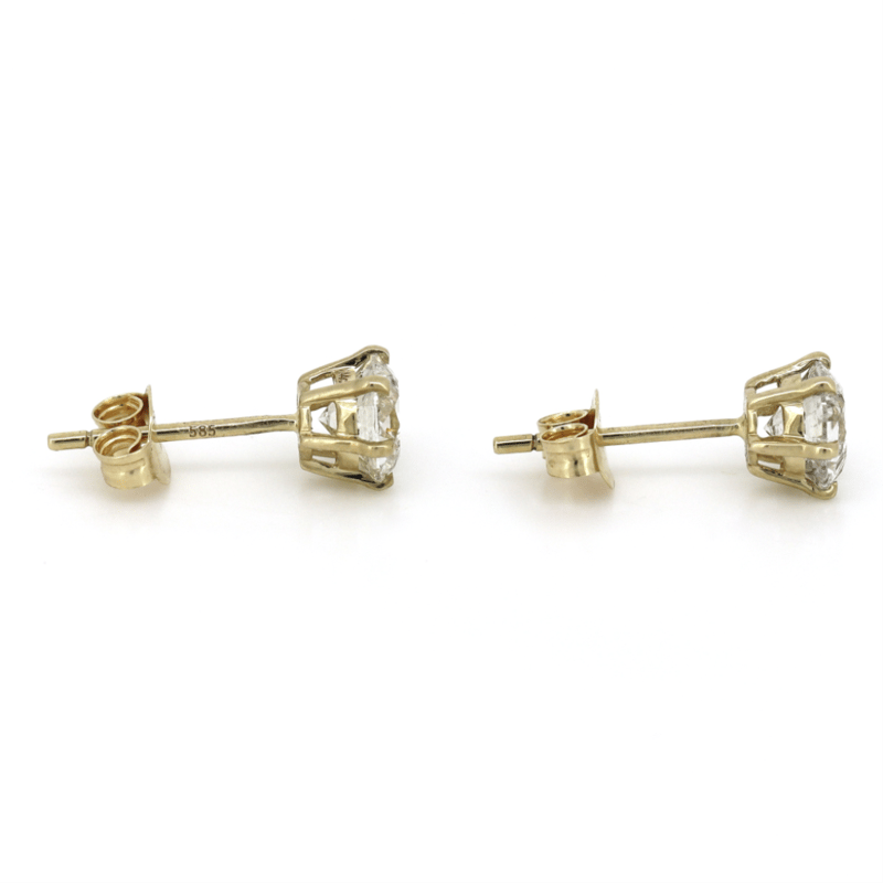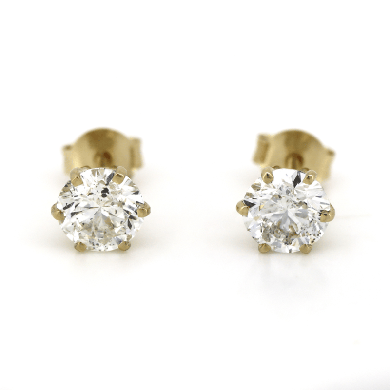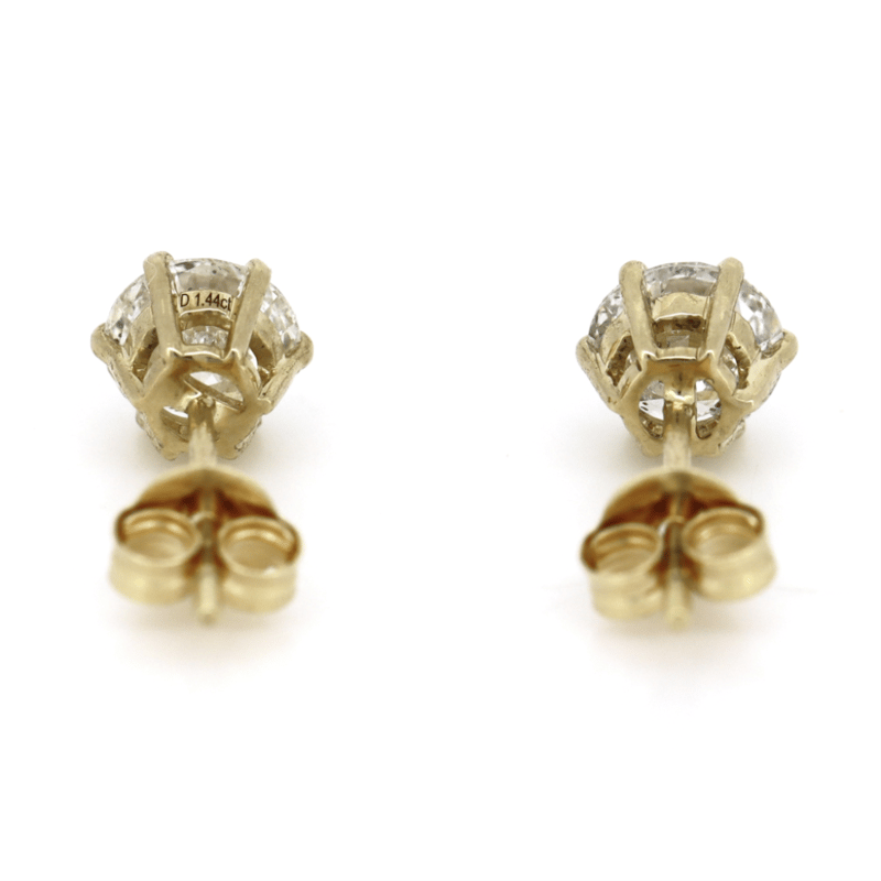 The Earrings Feature, 2 Round Brilliant Cut, Diamonds (1.44Ct Tdw, H-J Colour, Si2-I1 Clarity), 4 Claw Set. The Earrings Have Post Backs, With 14K Yellow Gold Butterfly Clasps.