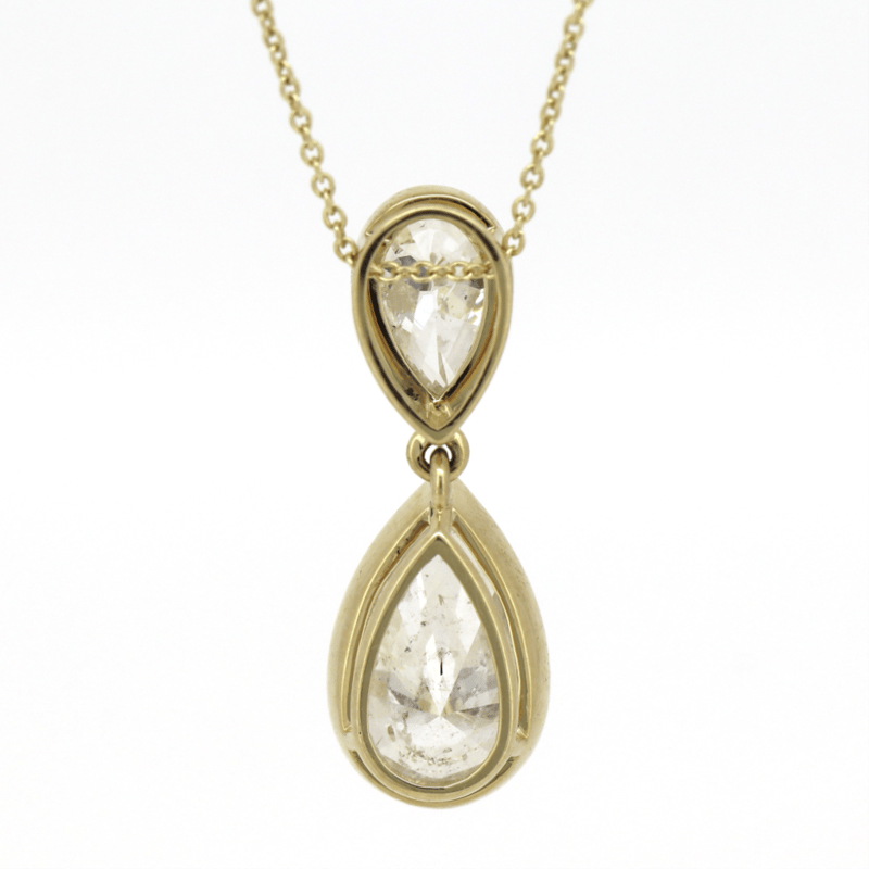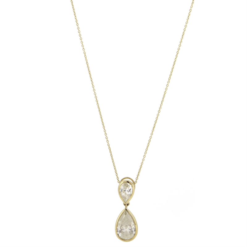 The Necklace Features, 2 Pear Cut, Diamonds (3.25Ct Tdw, G-H Colour, P1 Clarity), Bezel Set. The Necklace Features A Fine Link Cable Chain And A Lobster Clasp. The Necklace Is 50Cm In Length.