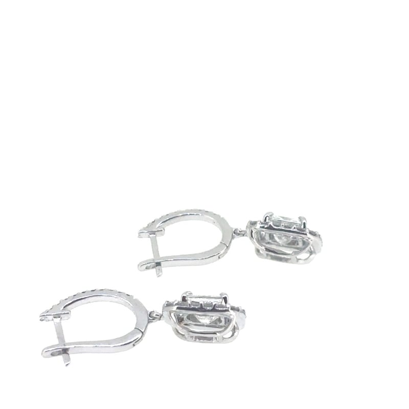 18CT WHITE GOLD DIAMOND EARRINGS.