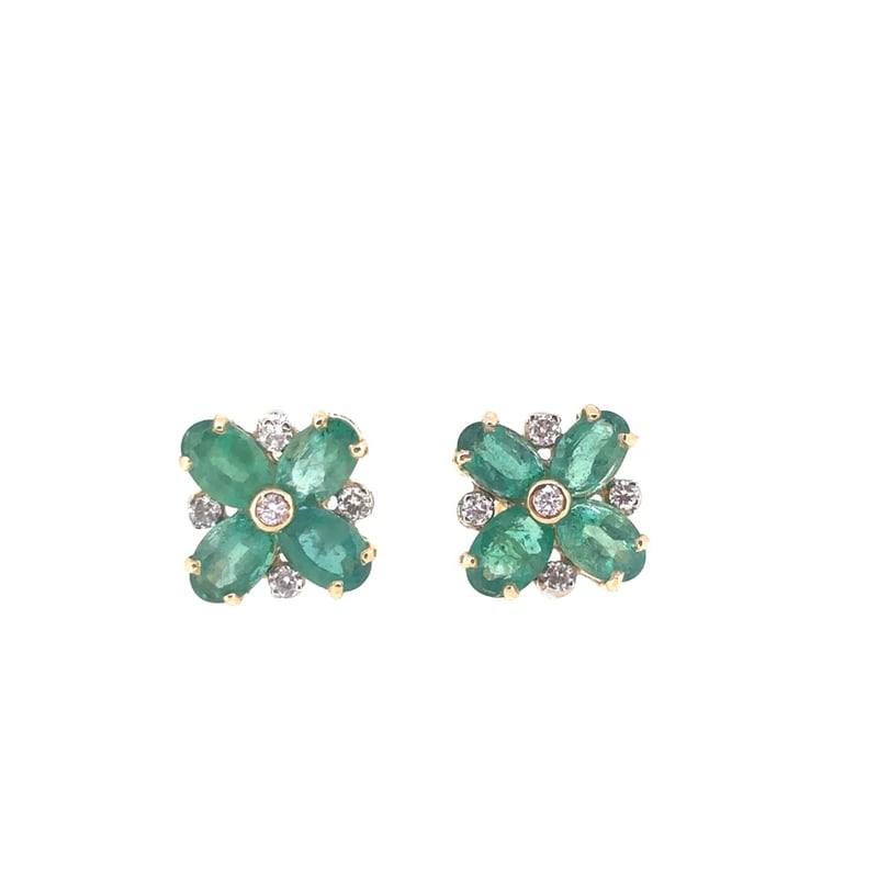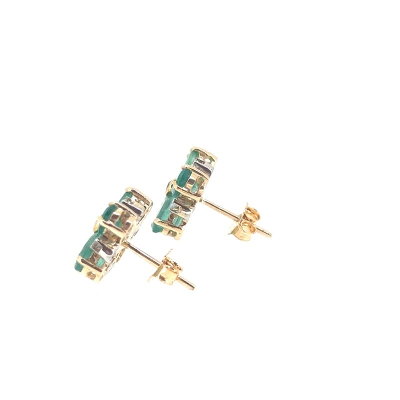 18CT YELLOW AND WHITE GOLD EMERALD AND DIAMOND EARRINGS.