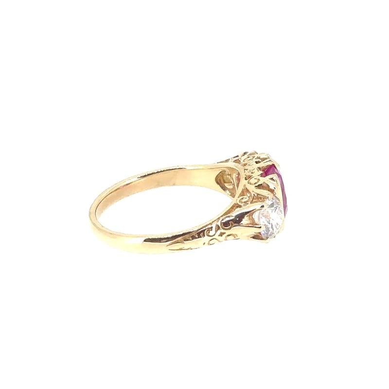 Finger Size M. Featuring Oval Cut Pink Sapphire, Claw Set, 1.75Ct. 2 Round Brilliant Cut Diamonds, Claw Set, 1Tcw, Vs, F.
