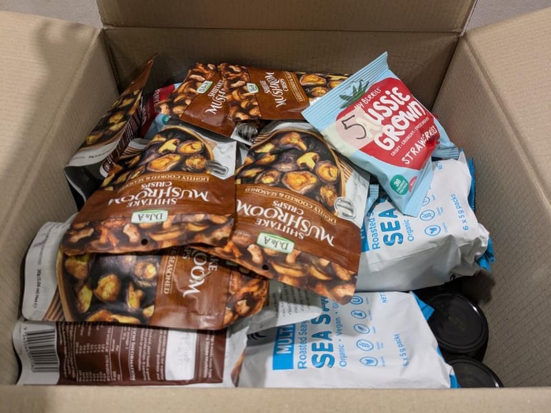 Assorted grocery items, including pickles jar, mushrooms crops and more...Note: No guarantees are made regarding product freshness, shelf life, or usability,- Bidders are advised to inspect and verify before.