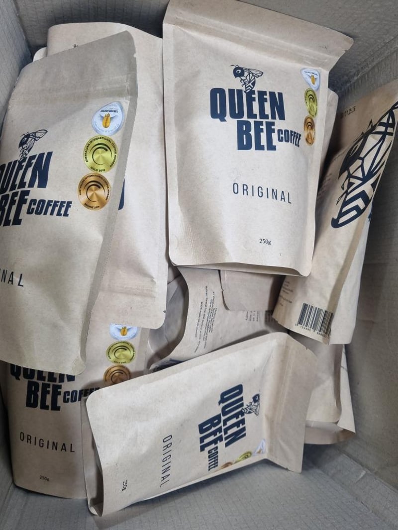 Queen Bee Coffee lot, 250g pouches. Sold as lot