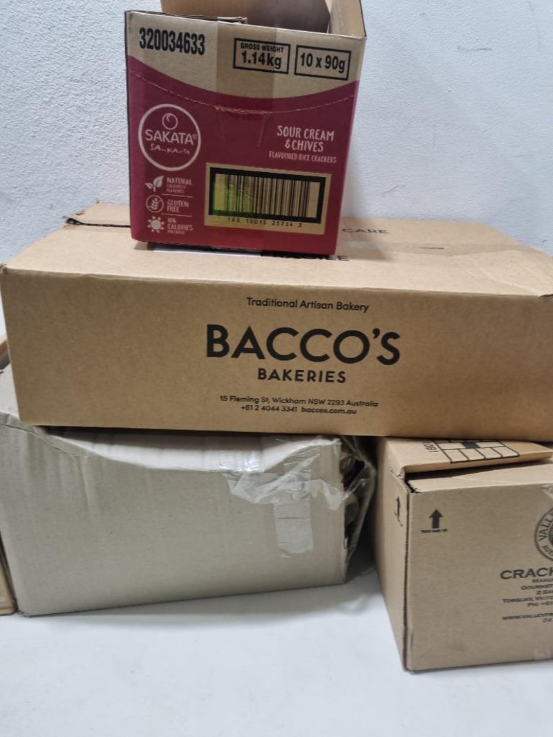 Assorted grocery items, includes pasta, cracker thins and more.... Sold as lot Note: No guarantees are made regarding product freshness, shelf life, or usability,- Bidders are advised to inspect and verify before.