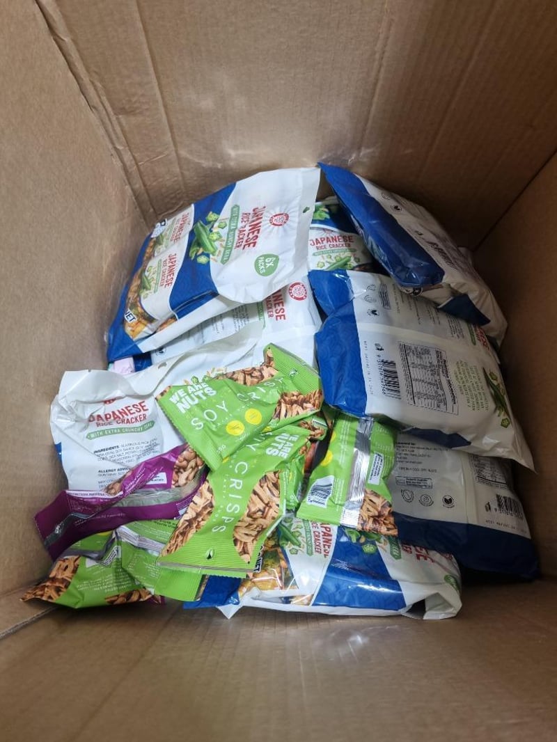 Assorted grocery items, includes rice crackers, vinegar and more..... Sold as lot Note: No guarantees are made regarding product freshness, shelf life, or usability,- Bidders are advised to inspect and verify before.