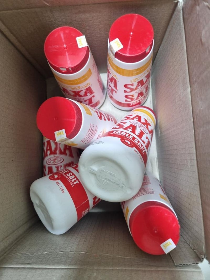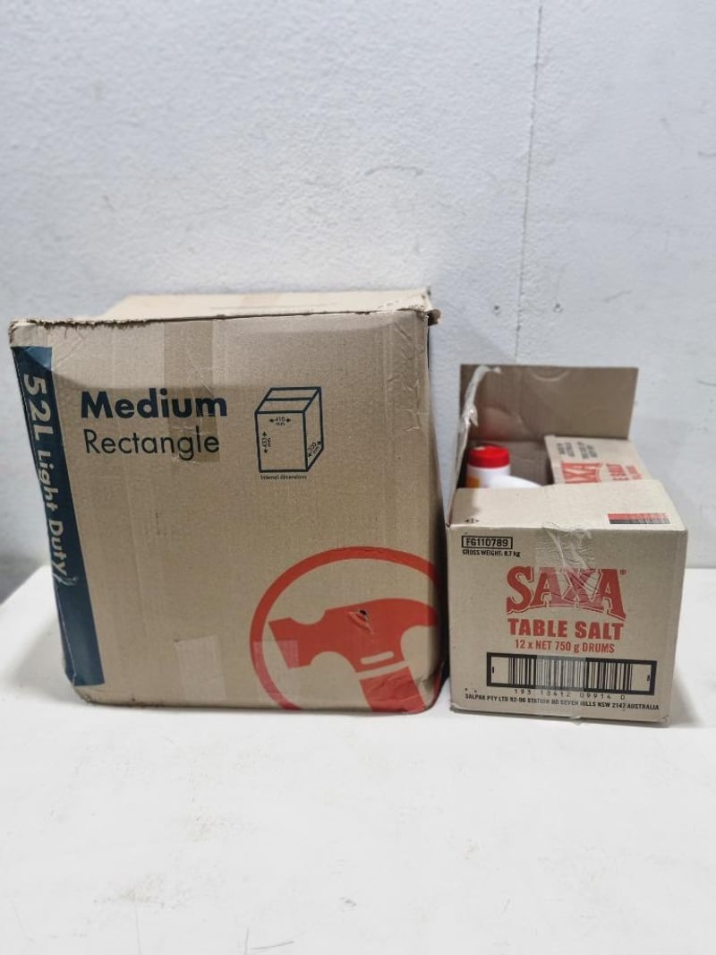 Assorted grocery items, includes Saxa Salt, Vitamins Wheats and more..... Sold as lot Note: No guarantees are made regarding product freshness, shelf life, or usability,- Bidders are advised to inspect and verify before.