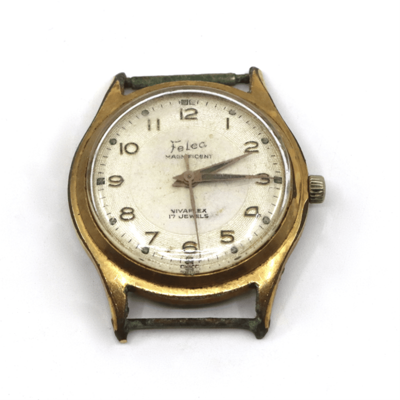 VINTAGE "FELCA STEELMASTER" MECHANICAL WATCH FACE AND MOVEMENT Total Item Weight: 22.8gms Water ProofStainless Steel BackAntimagneticSwiss MadeNote: Pre-Owned Condition: Good - Refer Images 0645930+9018