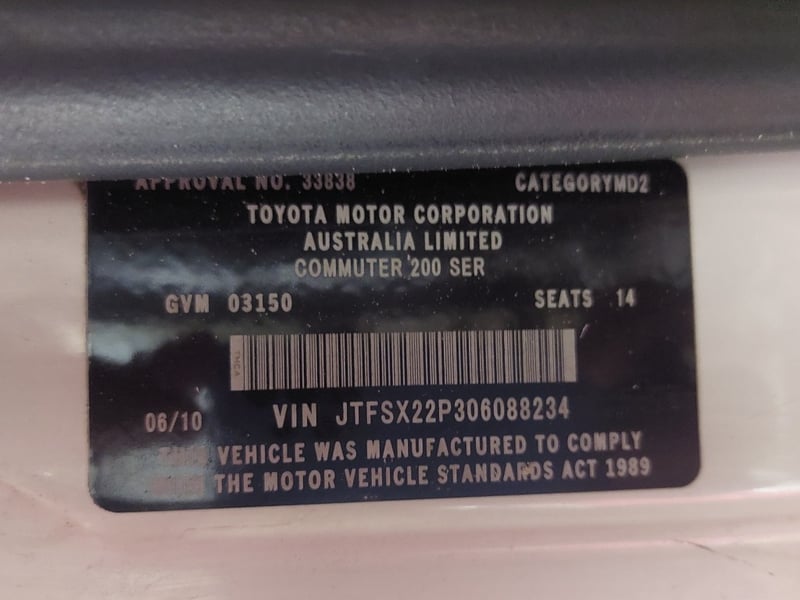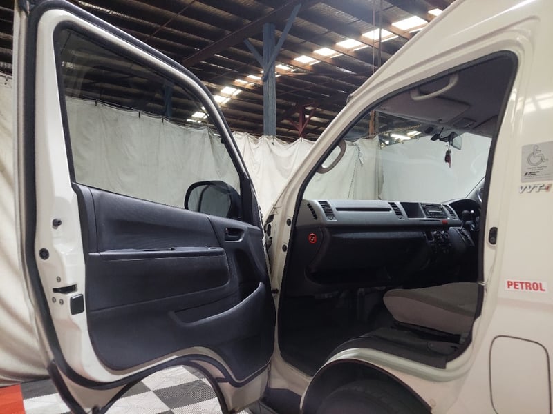 2010 Toyota Hiace TRH223R SLWB Year: 2010 Make: Toyota Model: Hiace Series: TRH223R Badge: SLWB Body: 3-Door Bus Drive Type: Rear wheel drive Odometer: Indicating 251,056 Kilometres Engine: 2.7 Petrol Transmission: Automatic Colour: White Seats: 8 Description/extras: Australian delivered, Air Conditioning, Power windows, SRS, Alloy wheels, AUX / USB, Central locking, CD player. Wheelchair Lift & service 6 monthly 3X Keys with books Price Guide - $20,450 - $24,750 (Based on Unmodified Vehicle) VIN: JTFSX22P306088234 ENG No: 2TR0913864 (As Per PPSR) (Key #35B Marple) Lloyd's stock #1027689+1 #PCV
