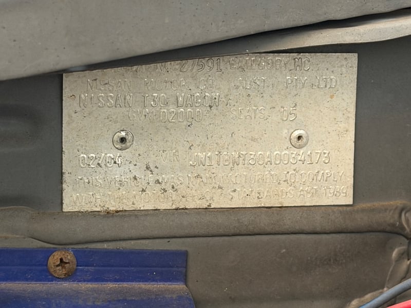 UNRESERVED 2004 Nissan X-Trail T30 II Ti Year: 2004 Make: Nissan Model: X-Trail Series: T30 II Badge: Ti Body: 5-Door SUV Drive Type: All wheel drive Odometer: Indicating 304,098 Kilometres Engine: 2.5 I4 Petrol Transmission: 5-Speed Manual Colour: Champagne Seats: 5 Description/extras: Air Conditioning, Power windows, SRS, Tinted windows, Cruise control, Leather interior, Alloy wheels, Sunroof, Towbar, Central locking, CD player. Paint fade & Patina all over vehicle. Wear & Tear commensurate with age & kms, Inspection Recommended. Price Guide - $300 - $1,500 VIN: JN1TBNT30A0034173 ENG No: QR25157687 (Key #C7 x2 Carrara) Lloyd's stock #583802+1 #PCV