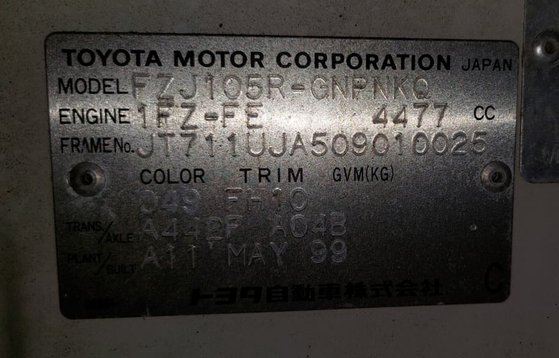 1999 Toyota Landcruiser FZJ105R Year: 1999 Make: Toyota Model: Landcruiser Series: FZJ105R Body: 4-Door Wagon Drive Type: Four-wheel drive Odometer: Indicating 252,003 Kilometres Engine: 4.5 Petrol Transmission: Automatic Colour: White Seats: 7 Description/extras: Air Conditioning, Power windows, SRS, Alloy wheels, AUX / USB, Towbar, Bulbar, Reverse camera. Has books VIN: JT711UJA509010025 ENG No: 1FZ0400993 AS PER PPSR #PCV (Key #4B Marple) Lloyd's stock #1035797+1