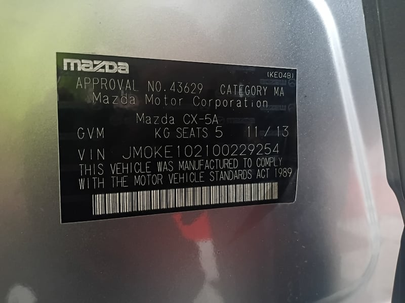 2013 Mazda CX-5 KF GT Year: 2013 Make: Mazda Model: CX-5 Series: KF- Grand Tourer Badge: GT Body: 5-Door SUV Drive Type: All wheel drive Odometer: Indicating 188,120 Kilometres Engine: 2.2 I4 Diesel Transmission: Automatic Colour: Silver Seats: 5 Description/extras: Price Guide - $6000 - $8000 (Based on Unmodified Vehicle) VIN: JM0KE102100229254 ENG No: SH30370323 AS PER PPSR #PCV (Key #A15) Lloyd's stock #1037470+1