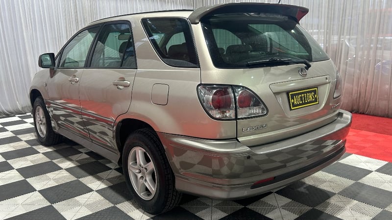 2001 Lexus RX300 Year: 2001 Make: Lexus Model: RX300 Body: 5-Door Wagon Drive Type: Front wheel drive Odometer: Indicating 206,642 Kilometres Engine: 3.0 V6 Petrol Transmission: 4-Speed Automatic Colour: Gold Seats: 5 Description/extras: Air Conditioning, Power windows, SRS, Power seats, Tinted windows, Cruise control, Leather interior, Climate control, Alloy wheels, Sunroof, Towbar, Central locking, CD player, Owner's manual. 1 x Key. Minor paint imperfections refer to images. VIN: 6U900MCU100095064 ENG No: 1MZ1071644 (as per PPSR) (Key #B11) Lloyd's stock #1036466+1 #PCV