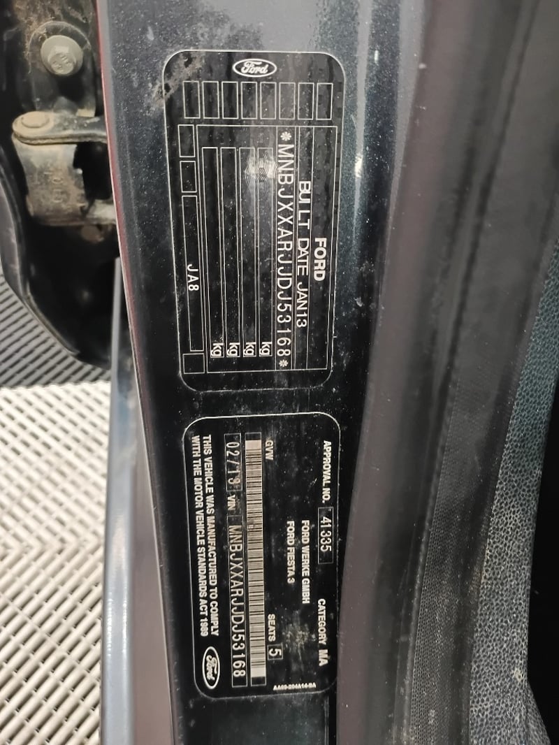 2013 Ford Fiesta WT Zetec Year: 2013 Make: Ford Model: Fiesta Series: WT Badge: Zetec Body: 5-Door Hatch Drive Type: Front wheel drive Odometer: Indicating 204,253 Kilometers Engine: 1.6 I4 Petrol Transmission: Manual Colour: Grey Seats: 5 Description/extras: VIN: MNBJXXARJJDJ53168 ENG No: TSJAAP13671 AS PER PPSR (Key #A26) #Ajax Lloyds stock #1037471+1 #PCV