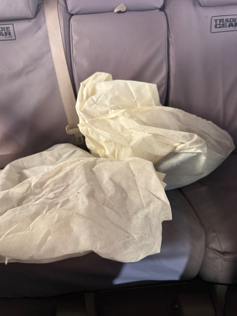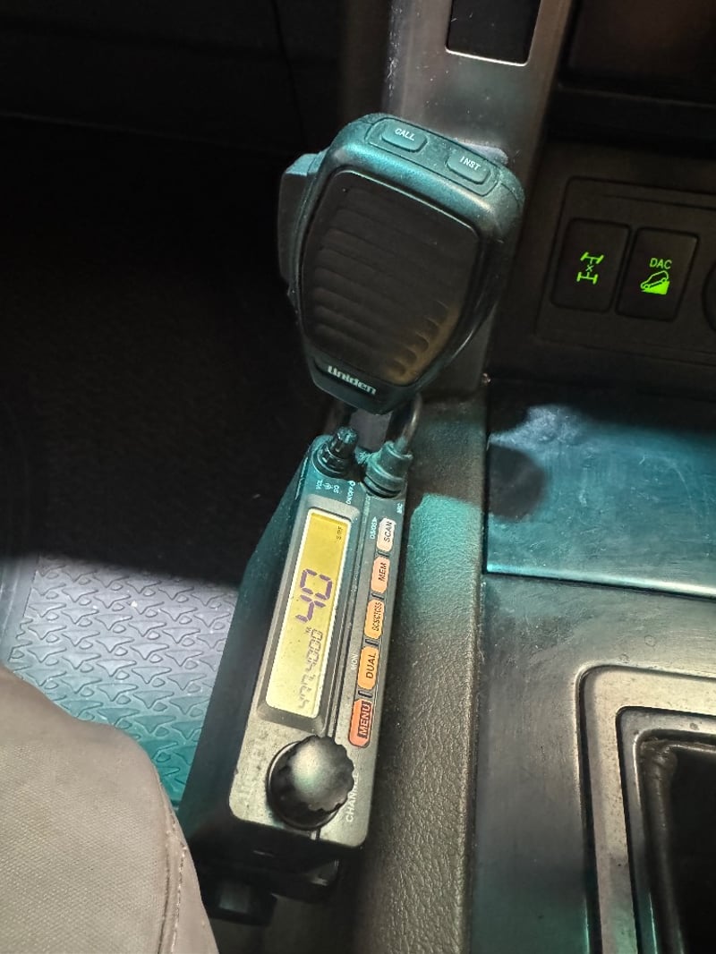 Uniden h2f radio, dash mat, Rubber floor mats, spot lights, spare tyre, spare mirrors. Marks on inner doors and roof lining, some scratches on exterior.