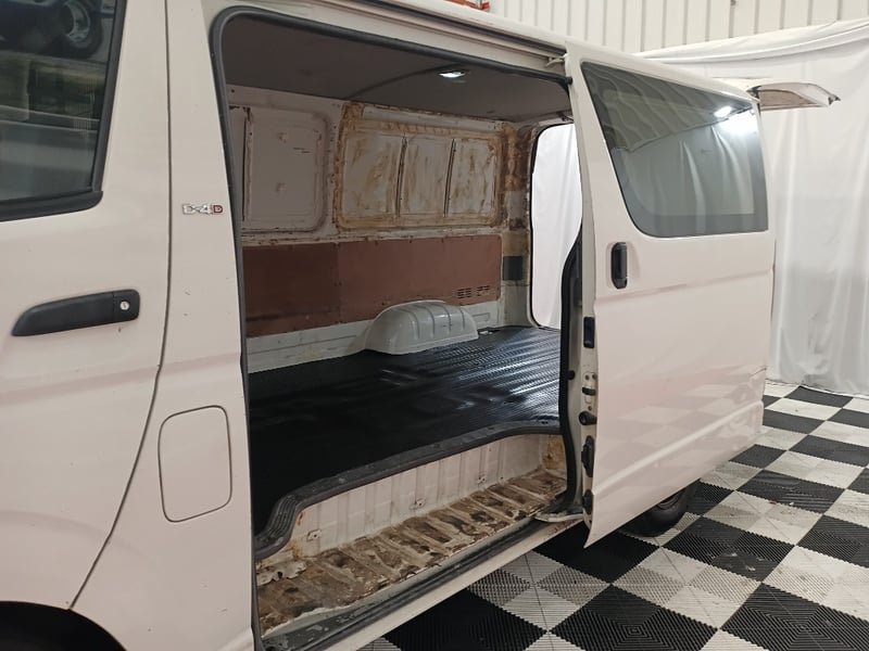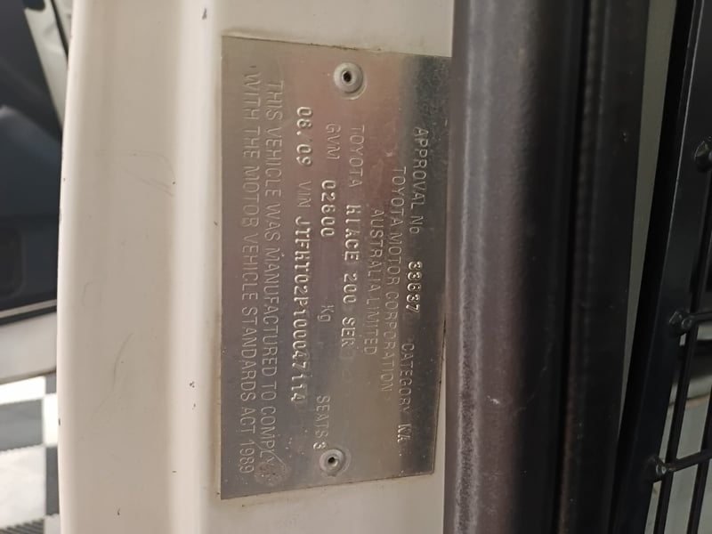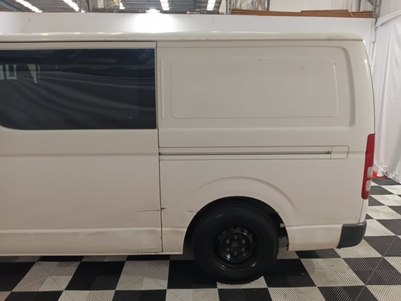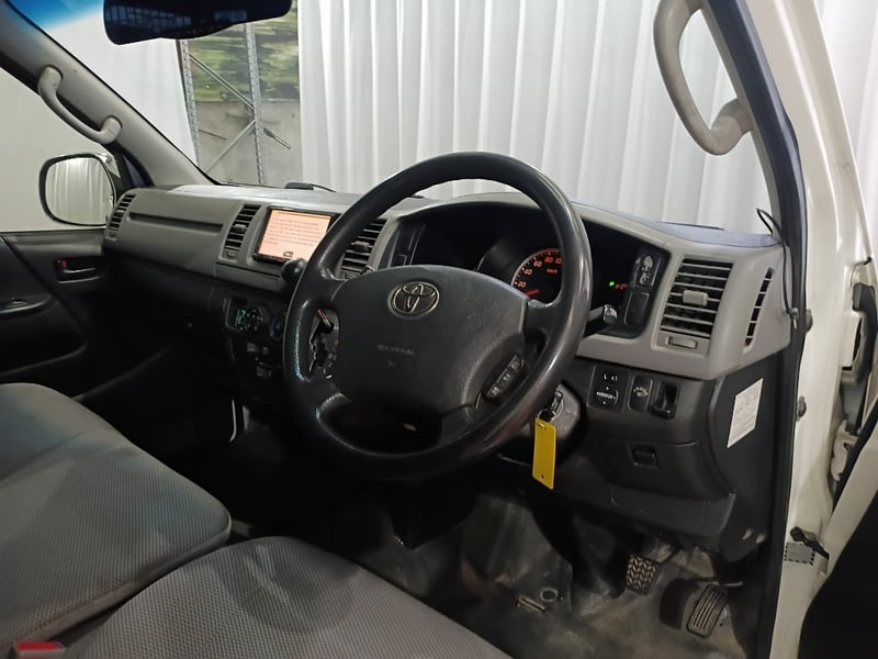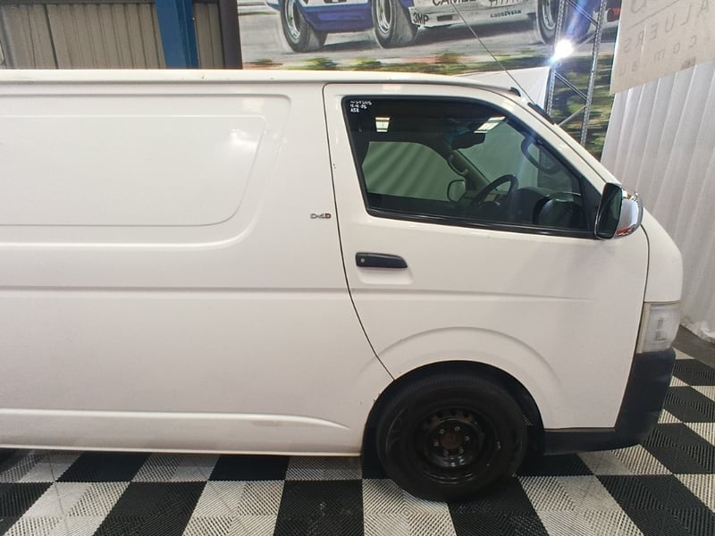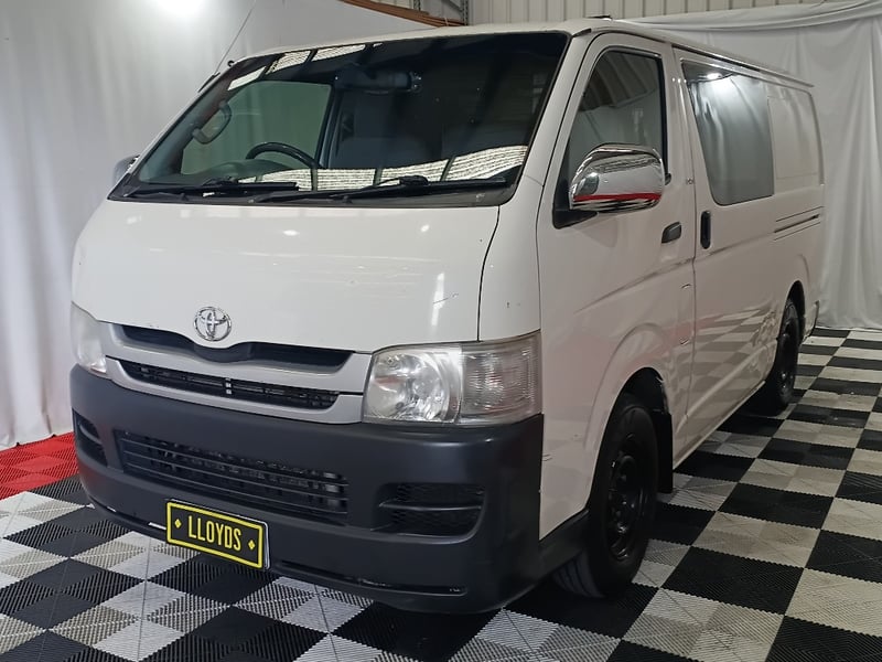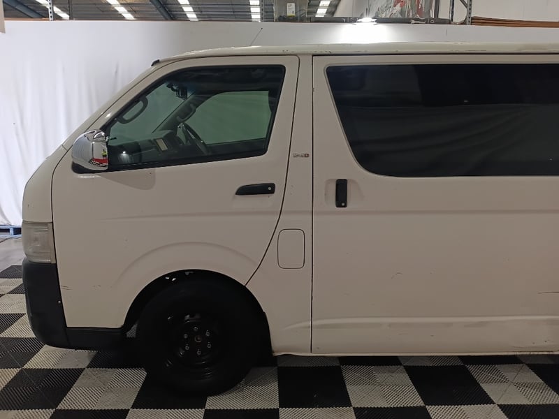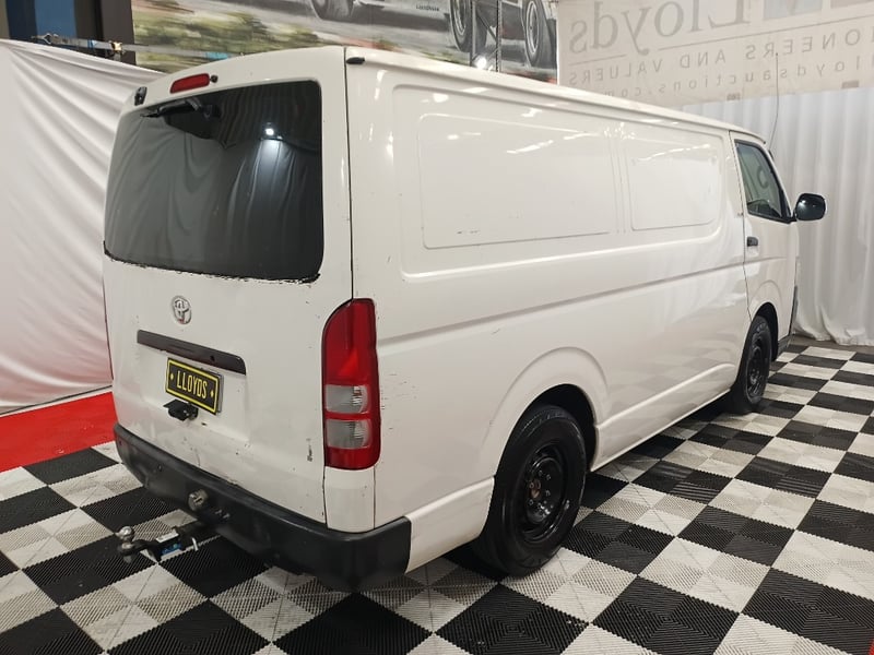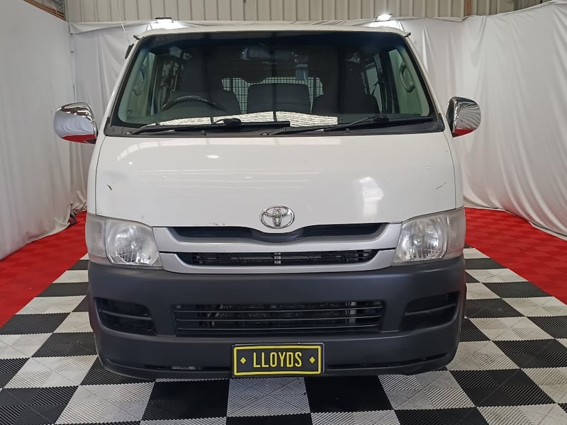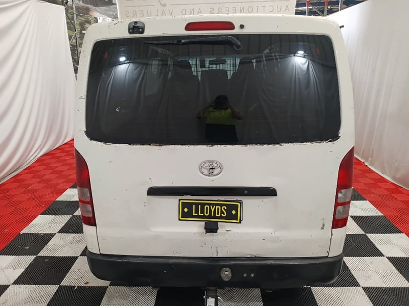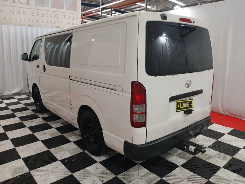 2009 Toyota Hiace KDH201R LWB Year: 2009 Make: Toyota Model: Hiace Series: KDH201R Badge: LWB Body: 4-Door Van Drive Type: Rear wheel drive Odometer: Indicating 294,098 Kilometers Engine: 3.0 I4 Diesel Transmission: Automatic Colour: White Seats: 3 Description/extras: VIN: JTFHT02P100047114 ENG No: 1KD1947688 as per PPSR (Key #A41) #Ajax Lloyds stock #1037345+1 #PCV