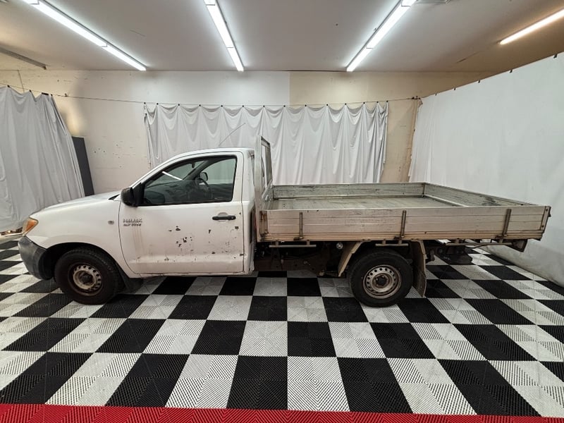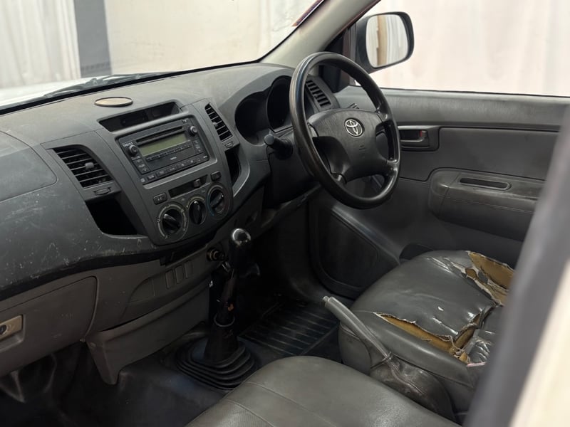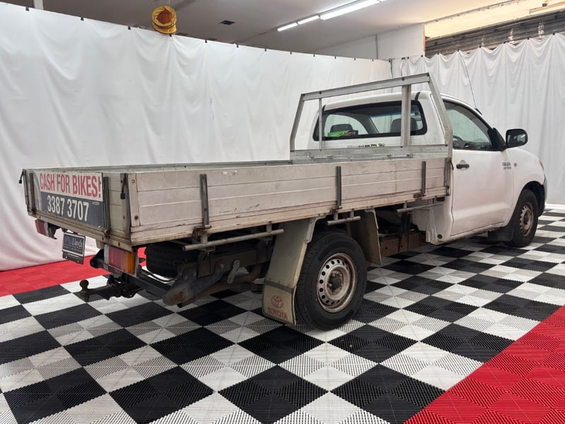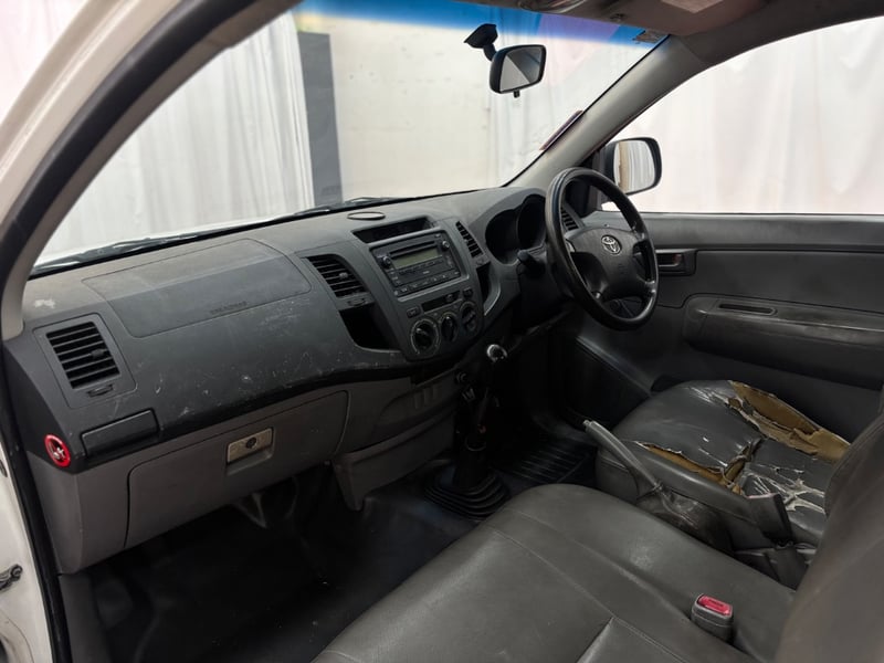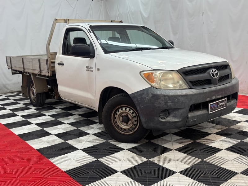 2007 Toyota Hilux TGN16R WorkmateYear: 2007Make: ToyotaModel: HiluxSeries: TGN16RBadge: Workmate Body: Single Cab ChassisDrive Type: Rear wheel driveOdometer: Indicating 454,753 KilometersEngine: 2.7 I4 PetrolTransmission: 5-Speed ManualColour: WhiteSeats: 3Description/extras: Air Conditioning, Climate control, Towbar, CD player, Log books/Owners manual. Interior:- Severe wear and tear on drivers seat- Scratches and wear on upholstery, trim and handles- 50 cent sized chunk is taken out of the steering wheel- Engine light is on- Marks on headlinerExterior:- Panels/Tray Dents, Scratches, Marks and Surface Rust Spots as per photos- Door Metal Trim Pieces are rusted as per photos- Shakes and misfires on idle- Exhaust rattles during idle- Paint chips and scratches on Passenger Door as per photos- Sunfade damage on exterior trim and front bumper- Loose front bumper fitment- Paint chips and surface rust on hood as per photos- Windscreen chips as per photos. VIN: MR0CX12G000028200ENG No: 2TR6405971#PCV(Key #A35 Carrara)Lloyds stock #1035925+1